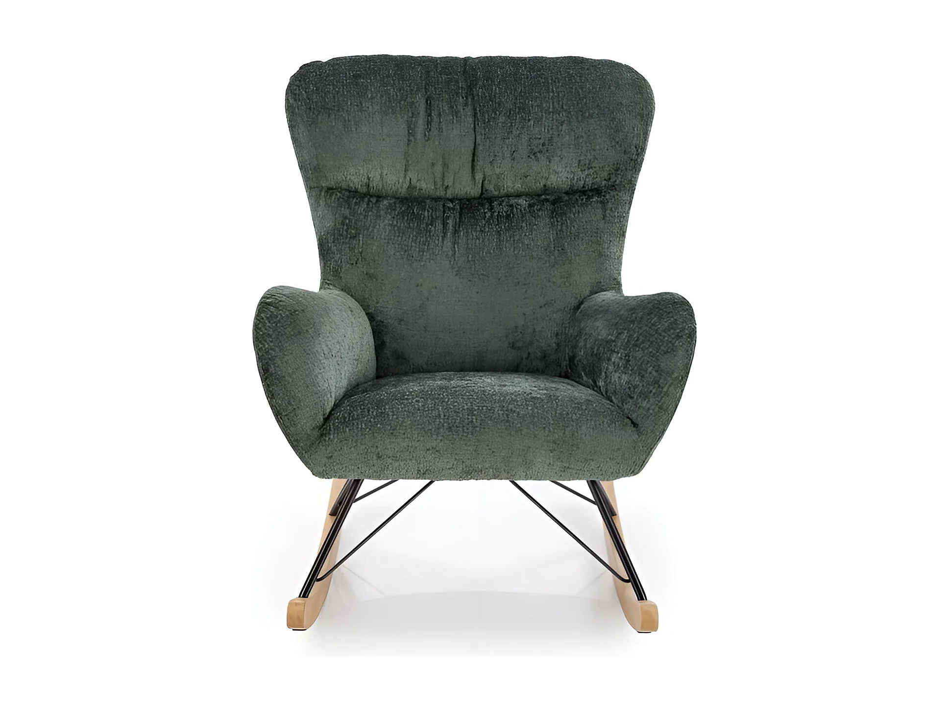 Fauteuil à bascule à oreilles en velours vert foncé bois massif