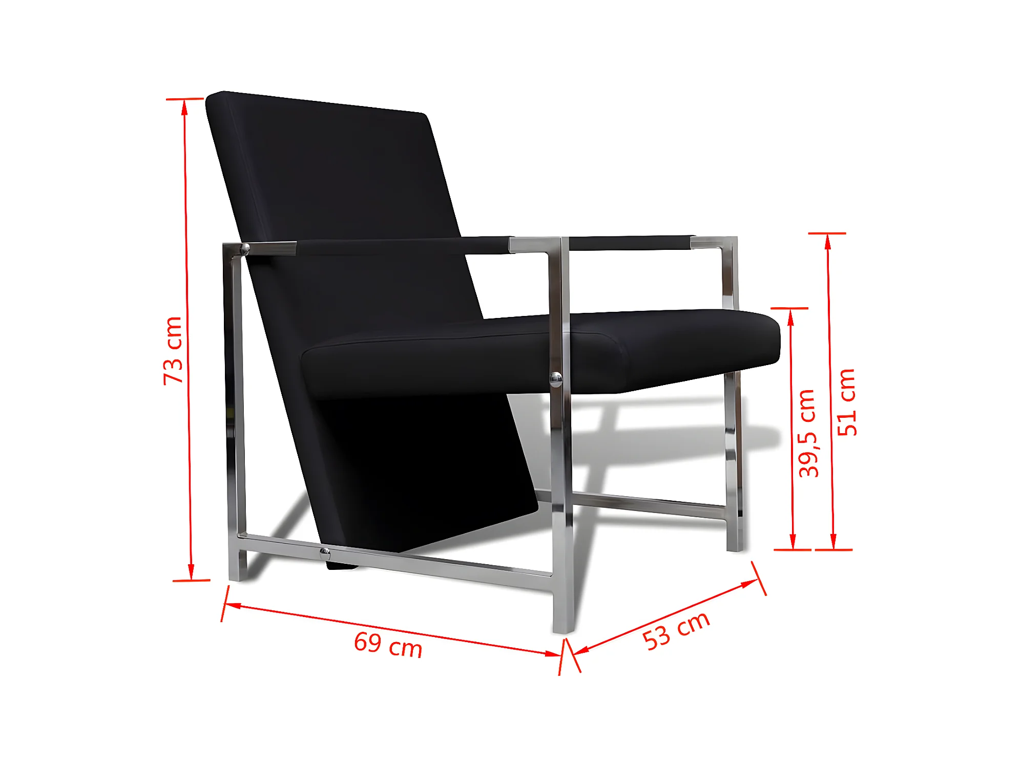 Fauteuil avec pieds chromés Noir Similicuir
