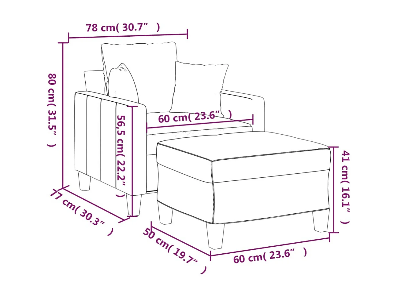 Fauteuil avec repose-pied Jaune clair 60 cm Tissu