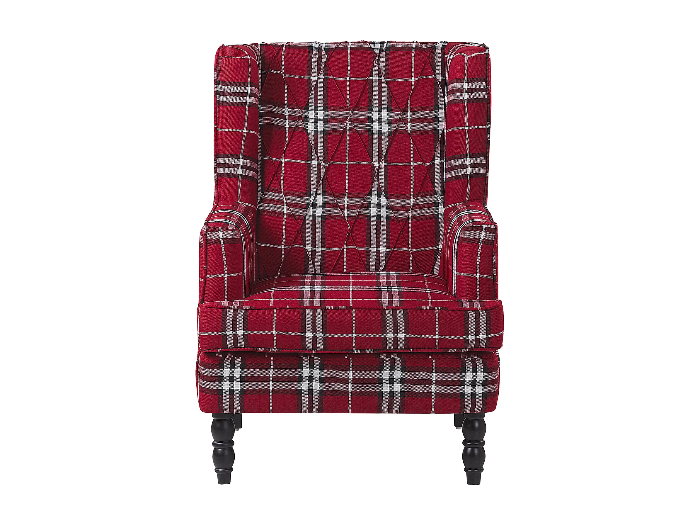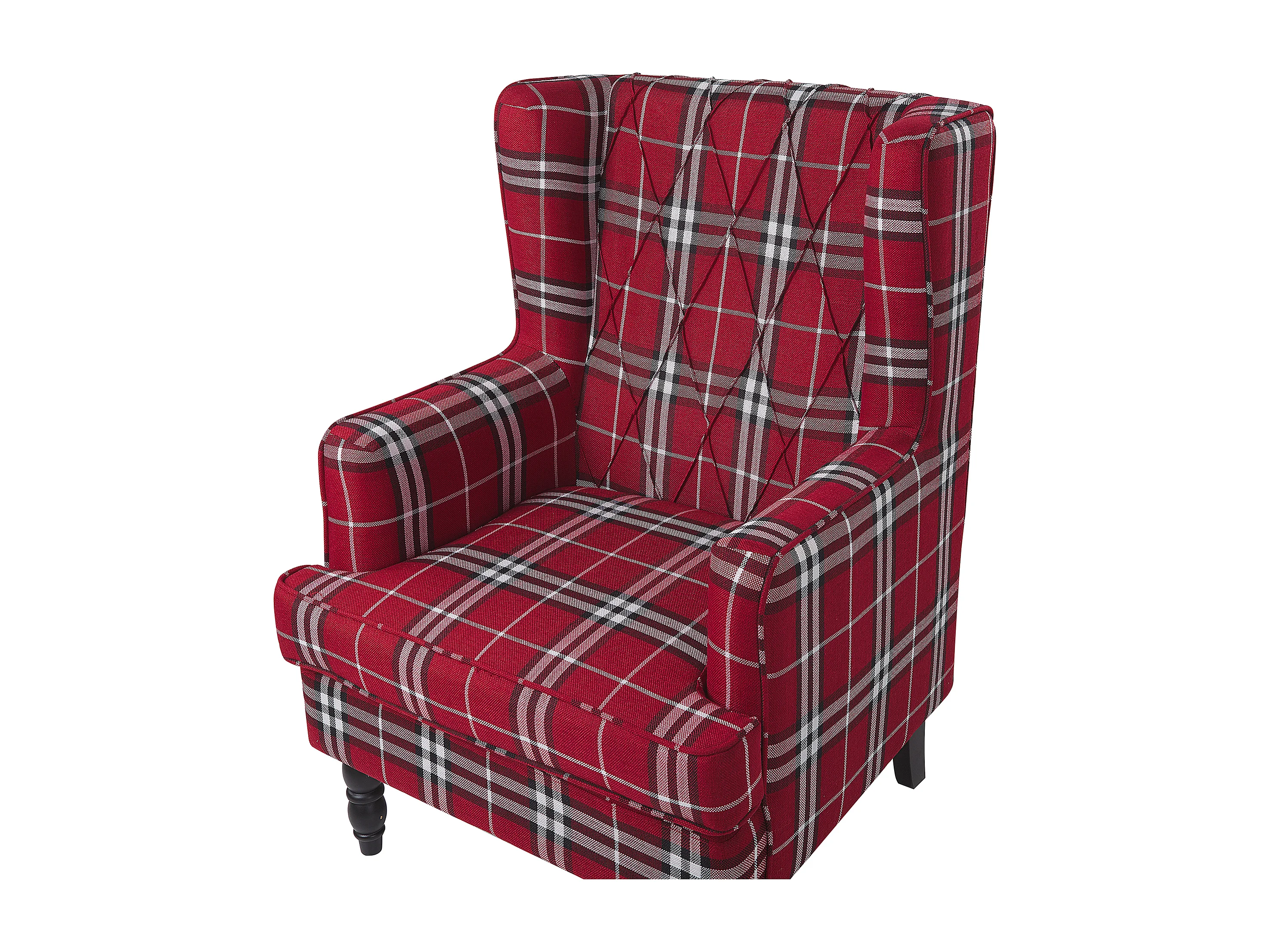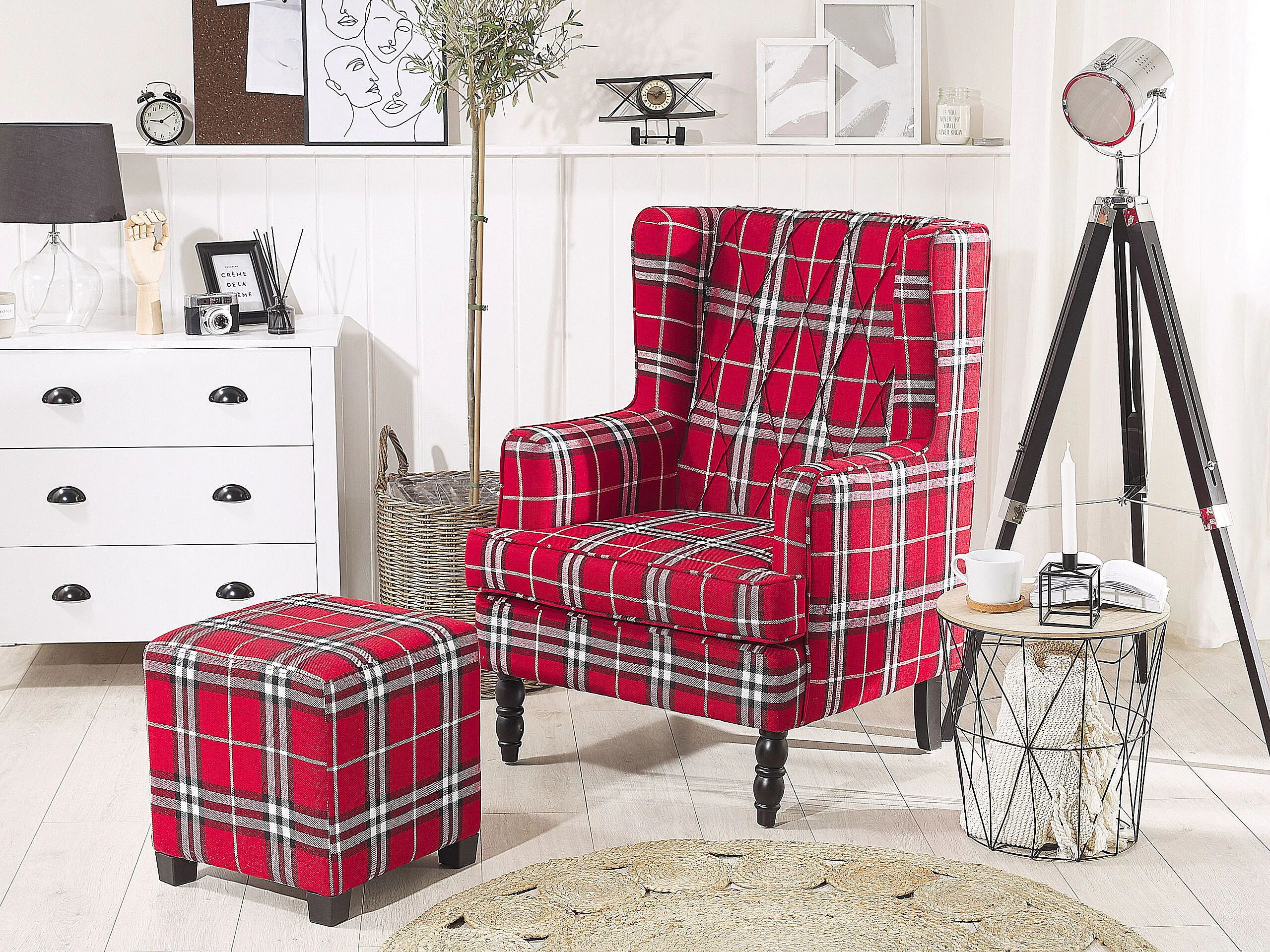 Fauteuil bergère en tissu rouge à carreaux avec repose-pieds assorti SANDSET