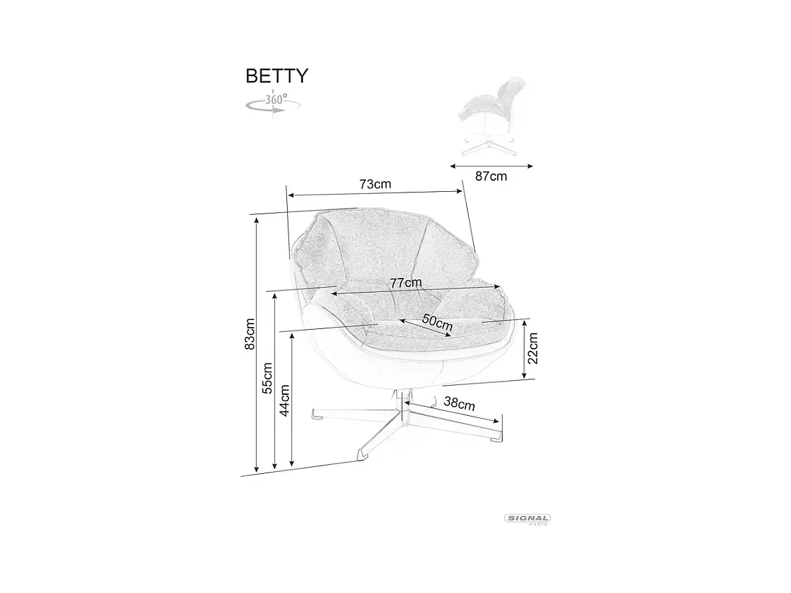 Fauteuil Bettys/revêtement en tissu/fonction pivotante 360o/Noir