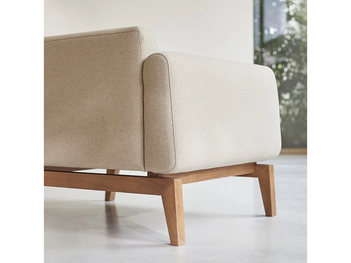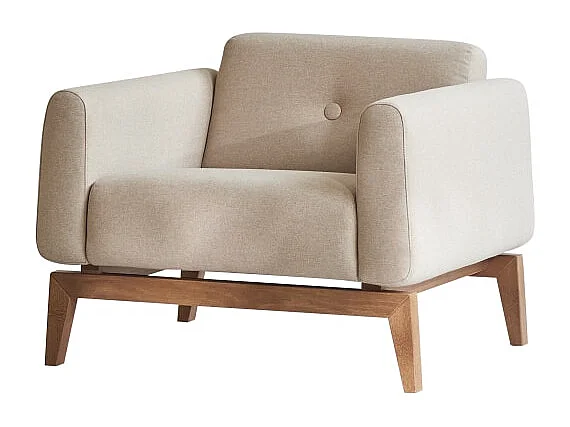 Fauteuil Bjorn en chêne massif et tissu écru, 1 place