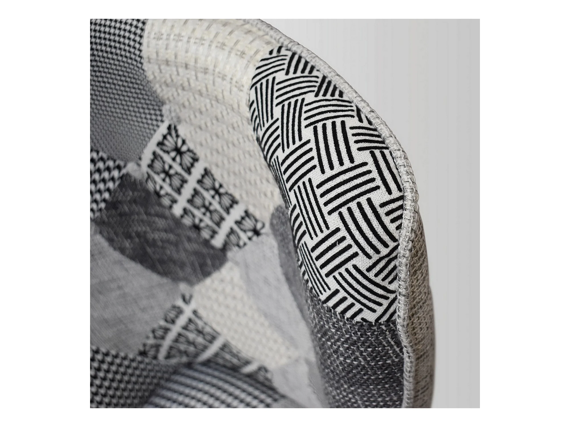 Fauteuil en tissu patchwork gris avec pieds en bois - HAVANA