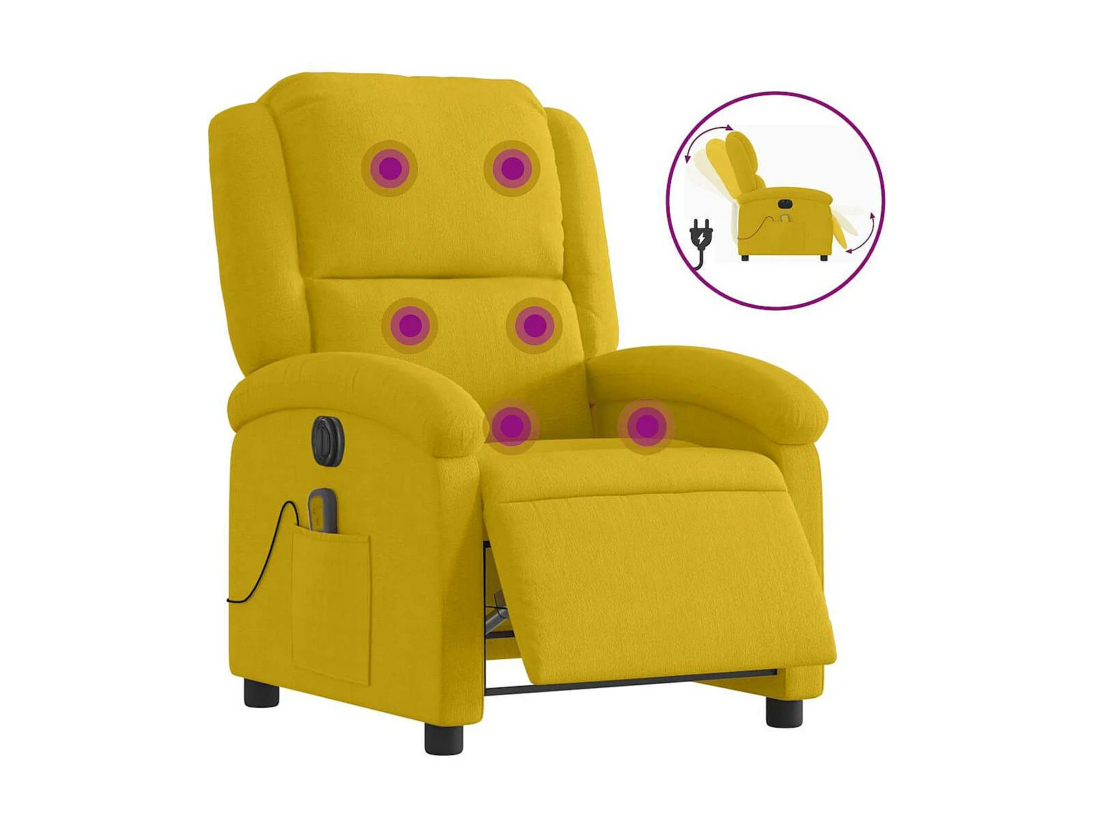 Fauteuil inclinable de massage repose-pieds jaune clair tissu