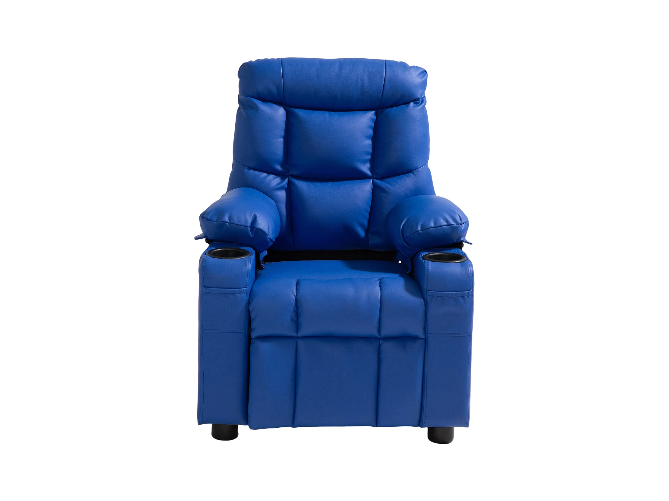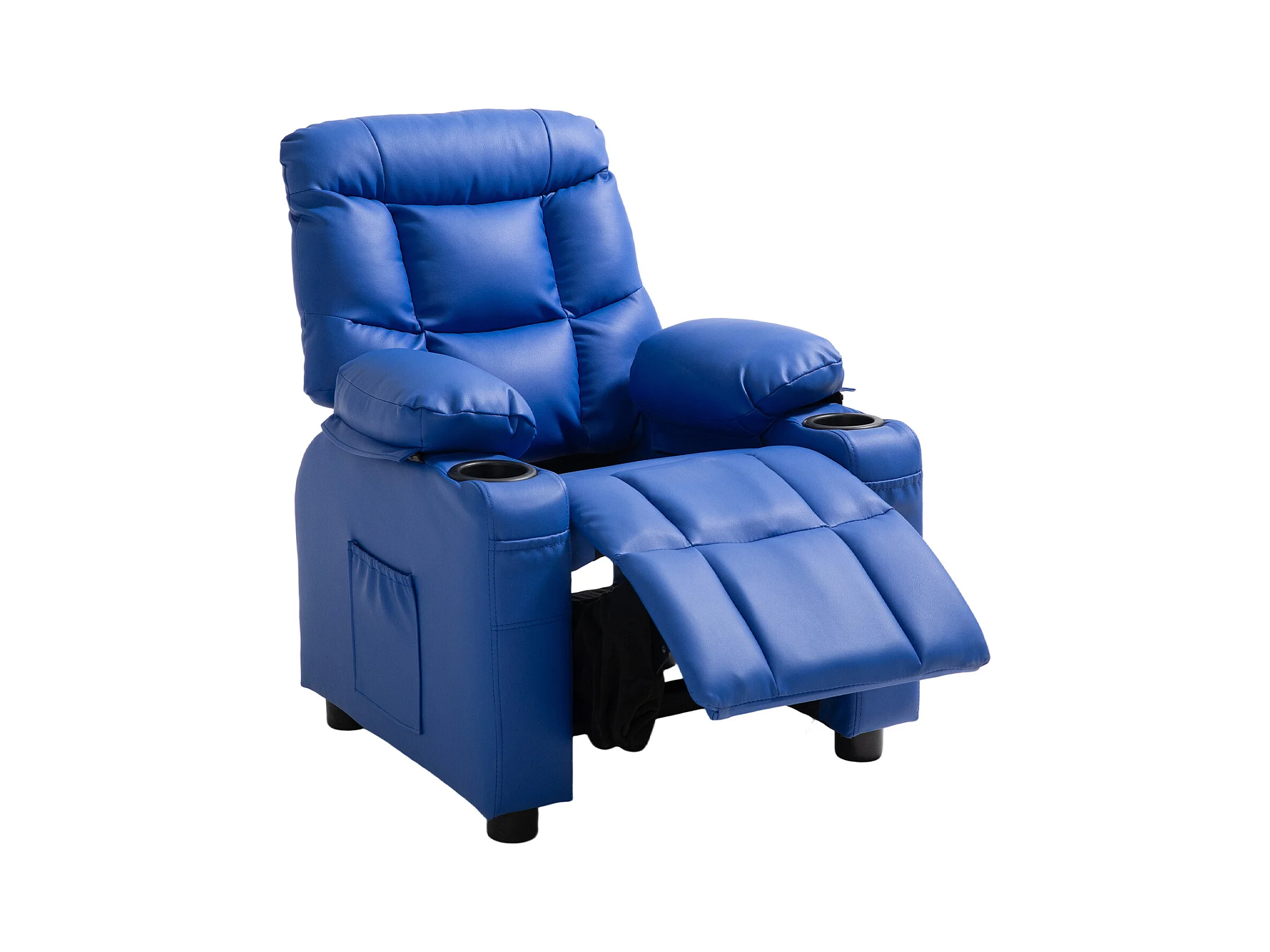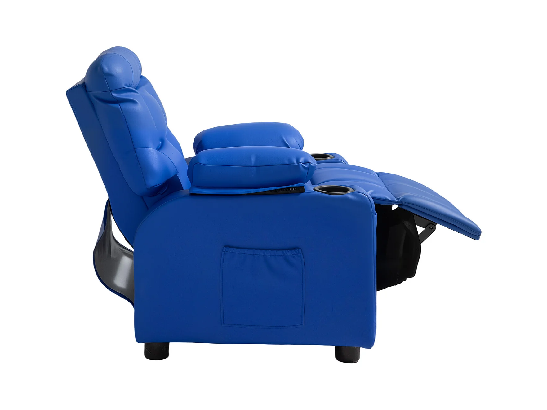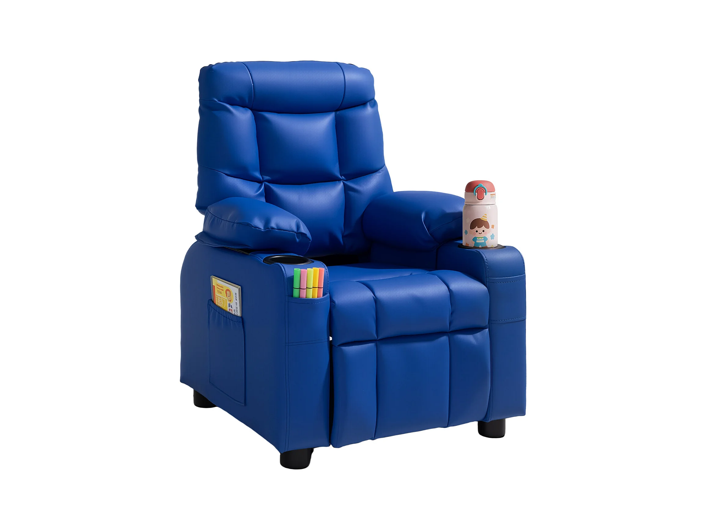Fauteuil Inclinable SucceBuy pour Enfants, Chaise Relax Ergonomique, avec Porte-Gobelets et Poches, Dossier Réglable 107° à 126°, pour Chambre d’Enfants, Bleu