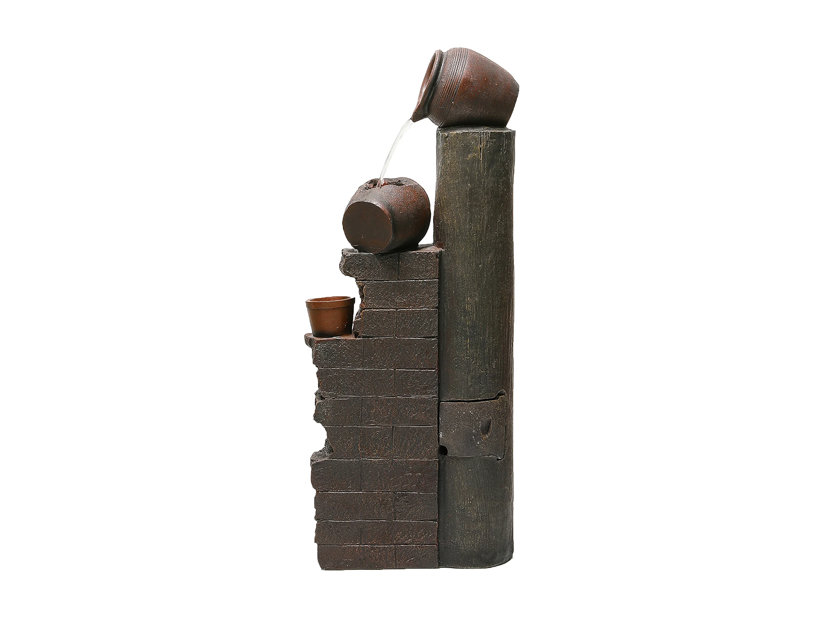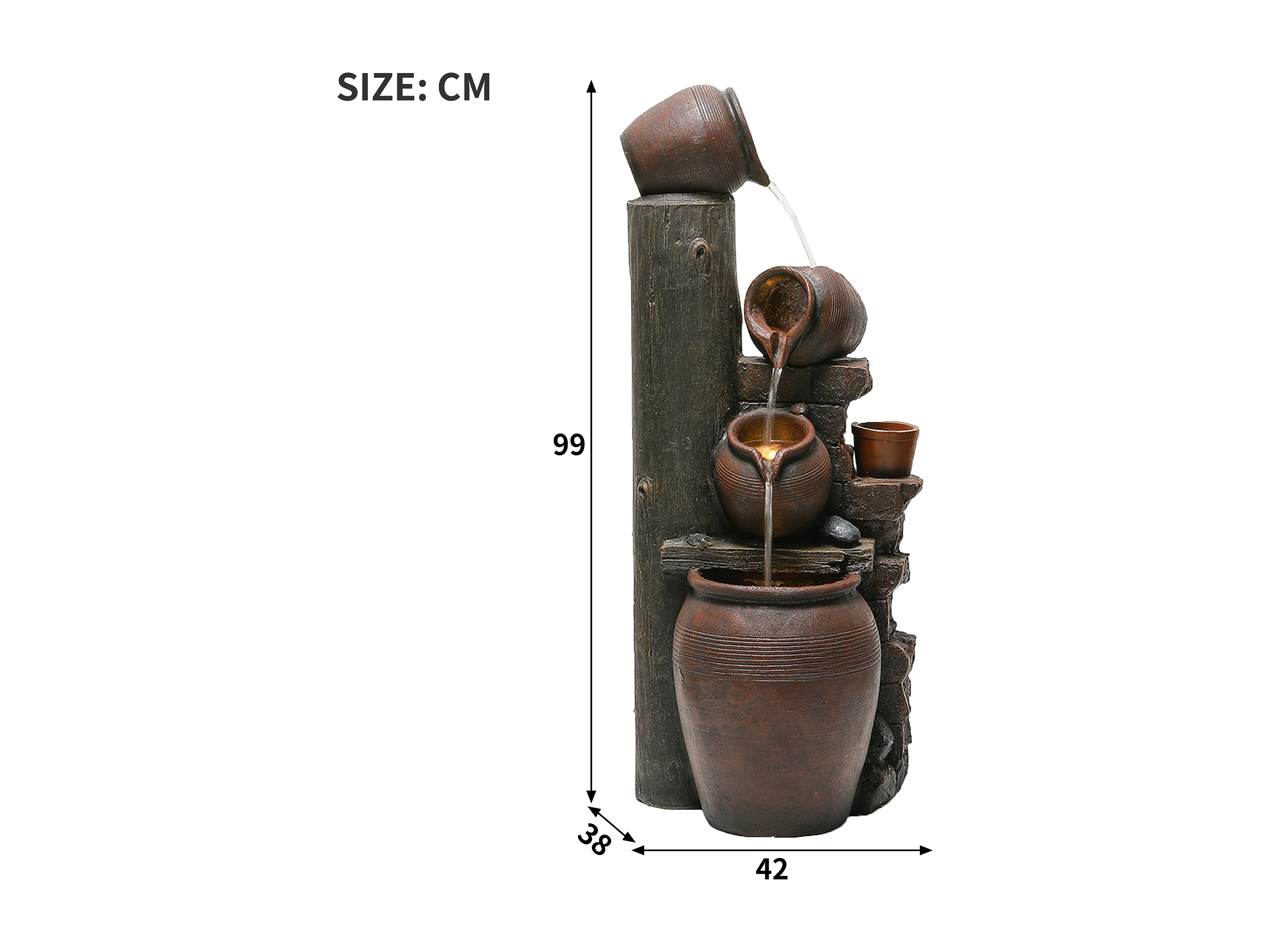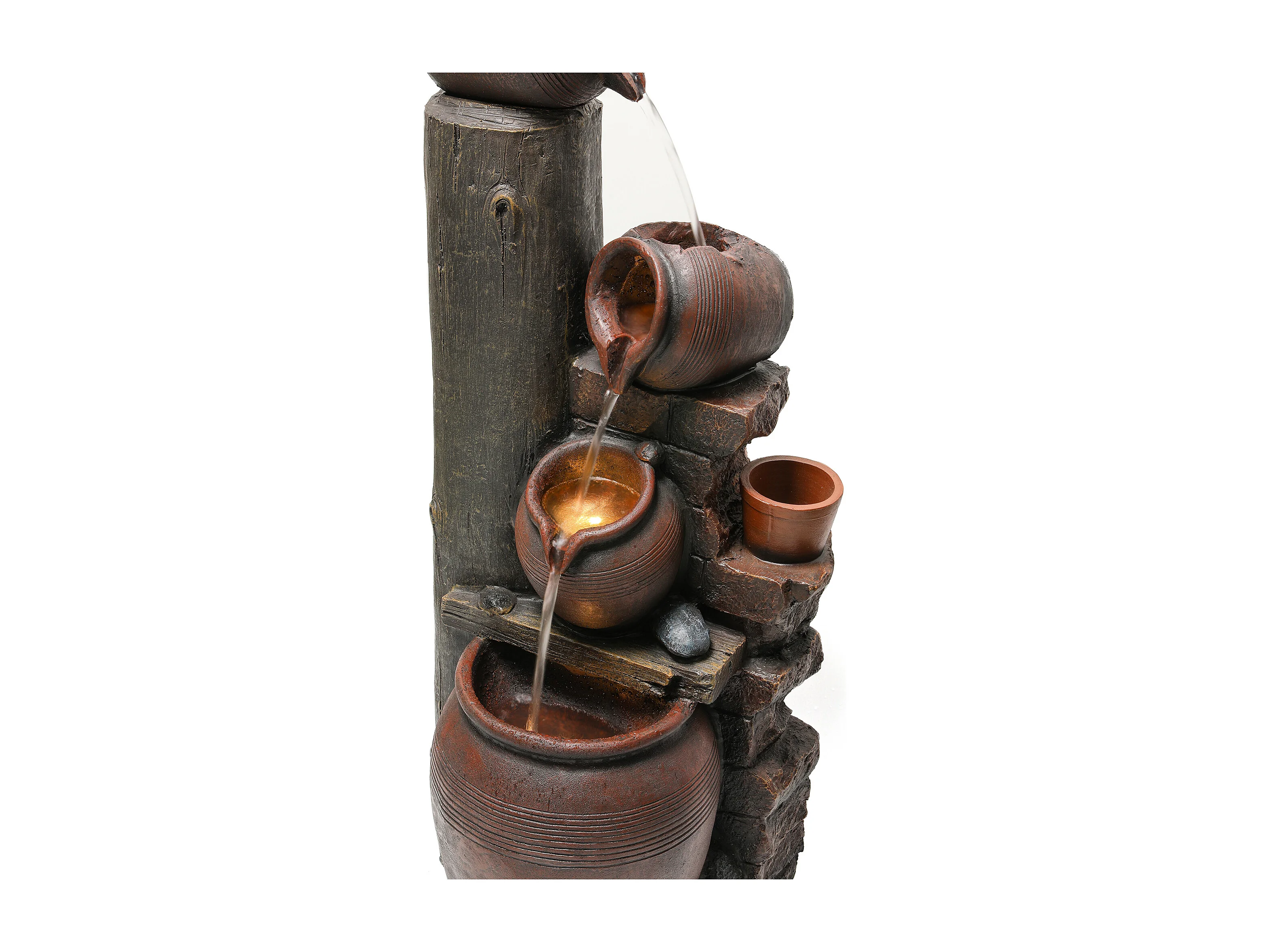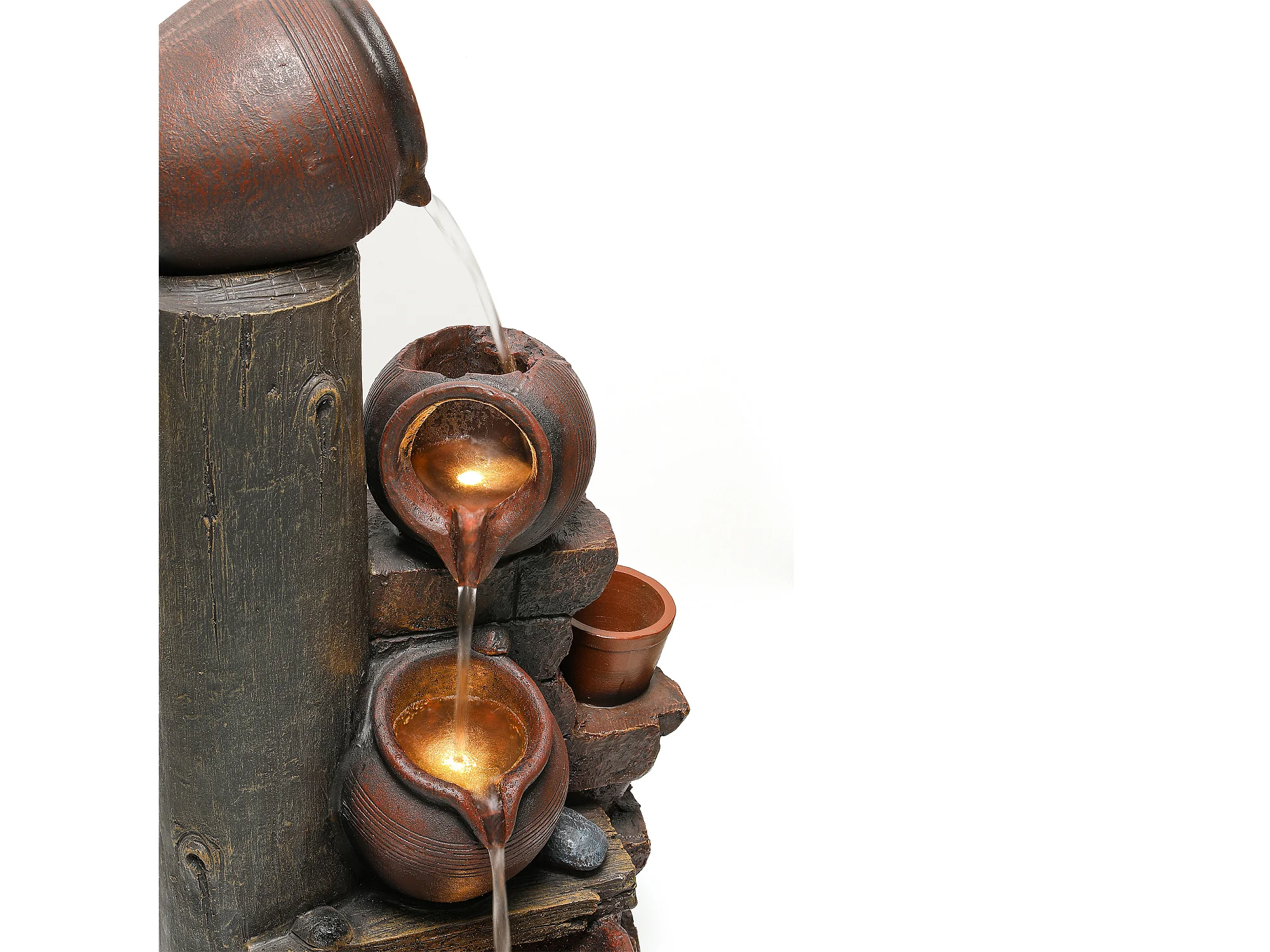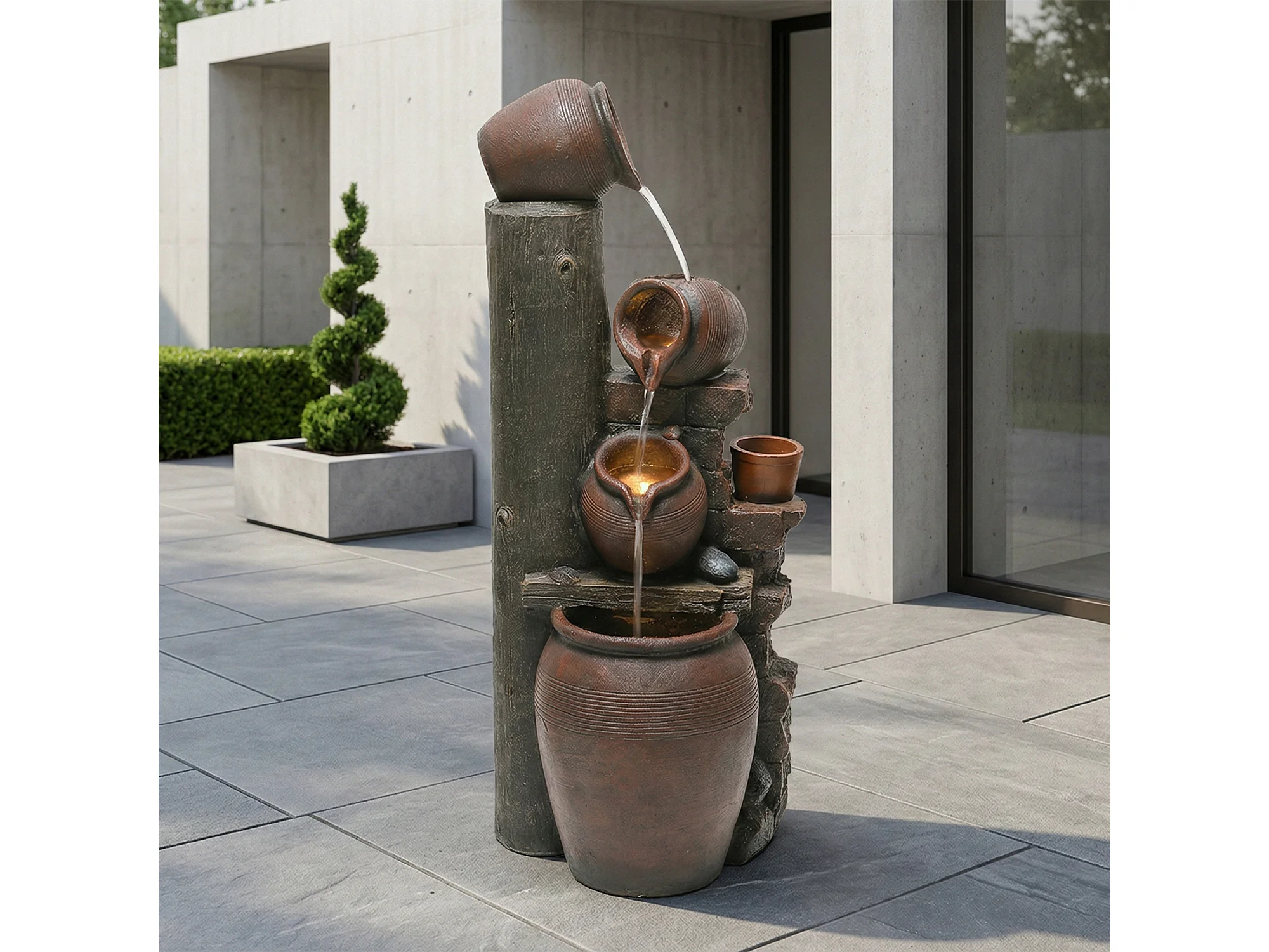 Fontaine de Jardin Cascade 4 Niveaux - Design Jarres Rustiques avec Éclairage LED et Pompe 600L/h - Décoration Extérieur/Intérieur - Marron Terre Cuite