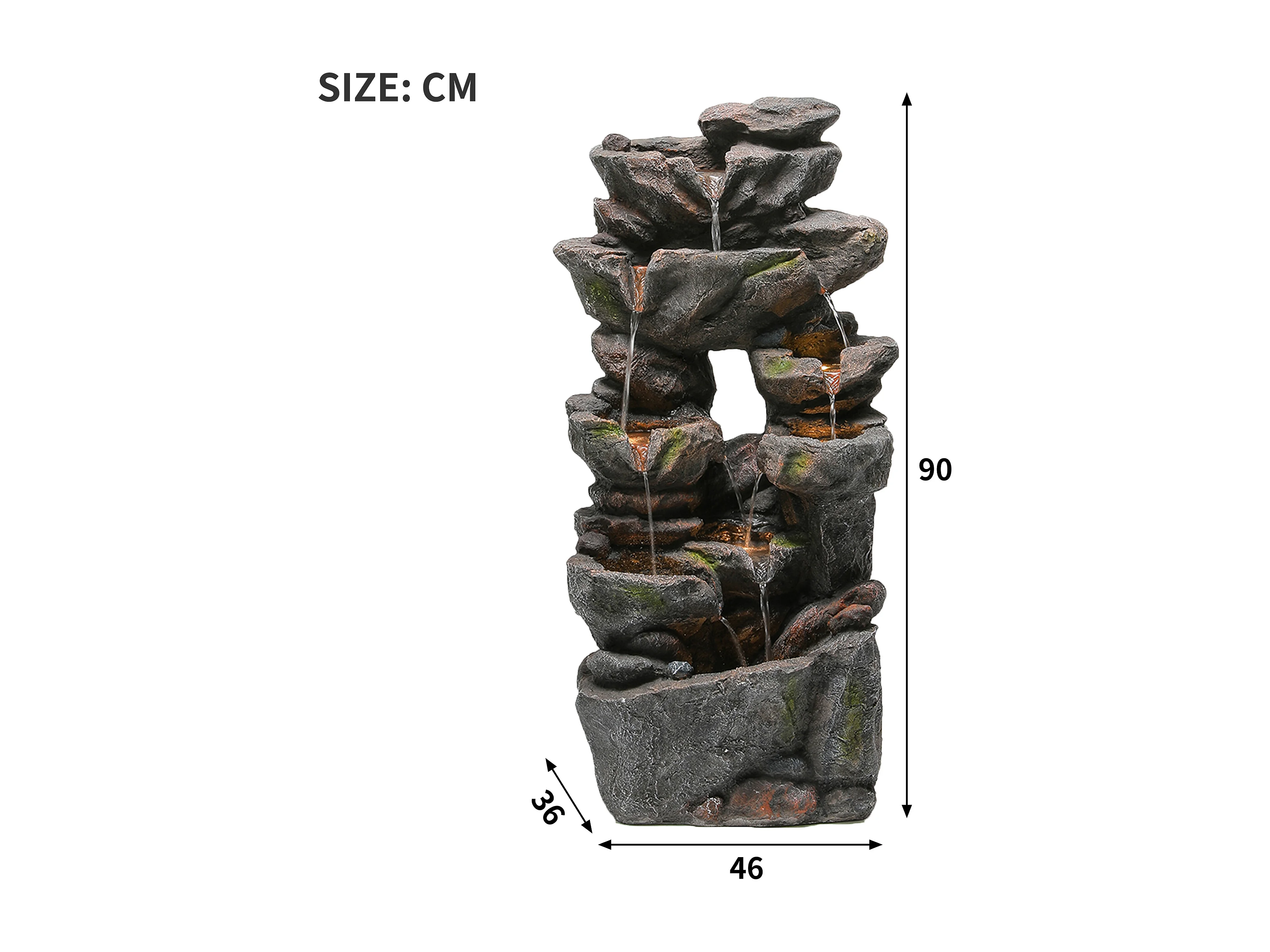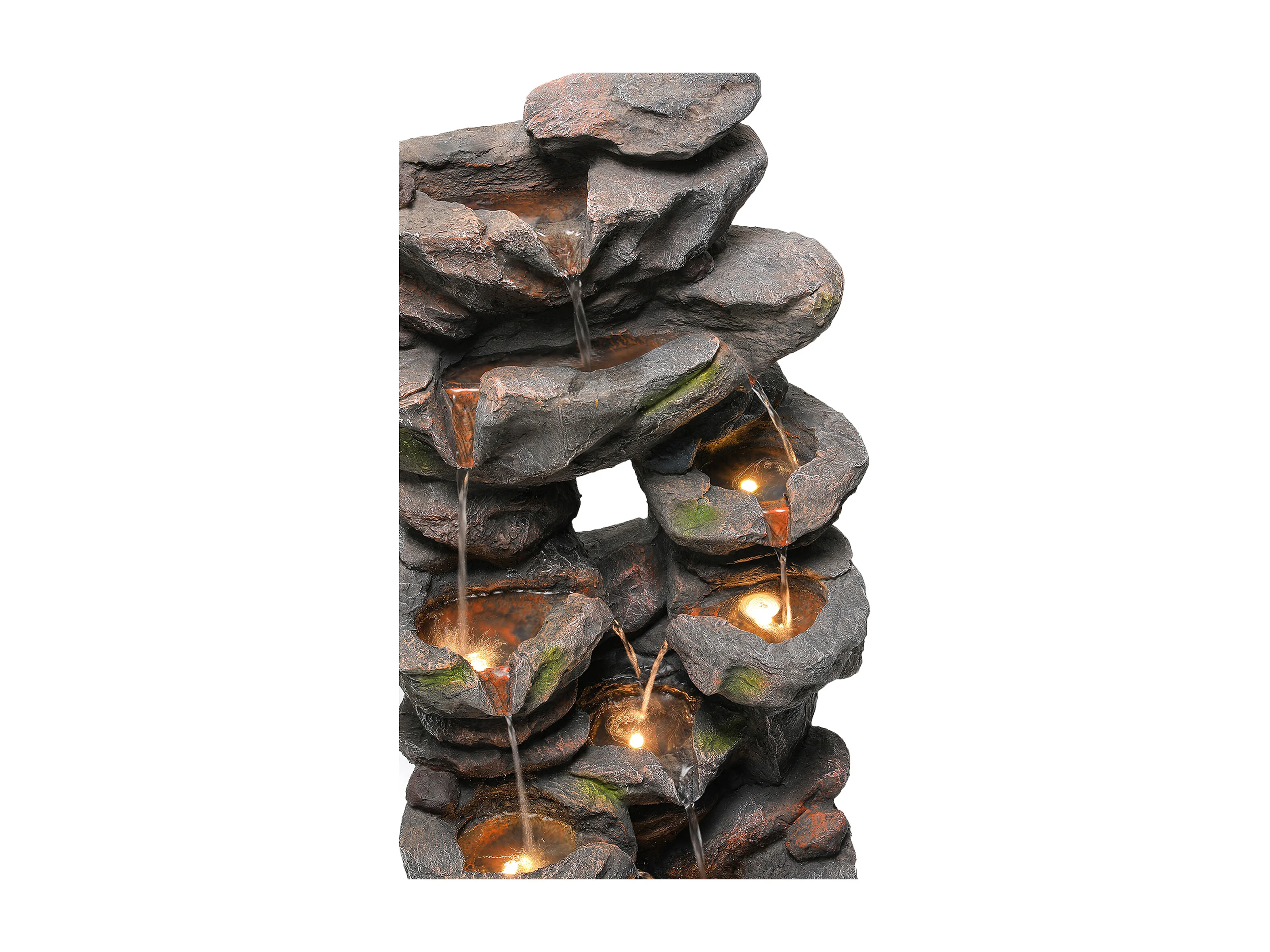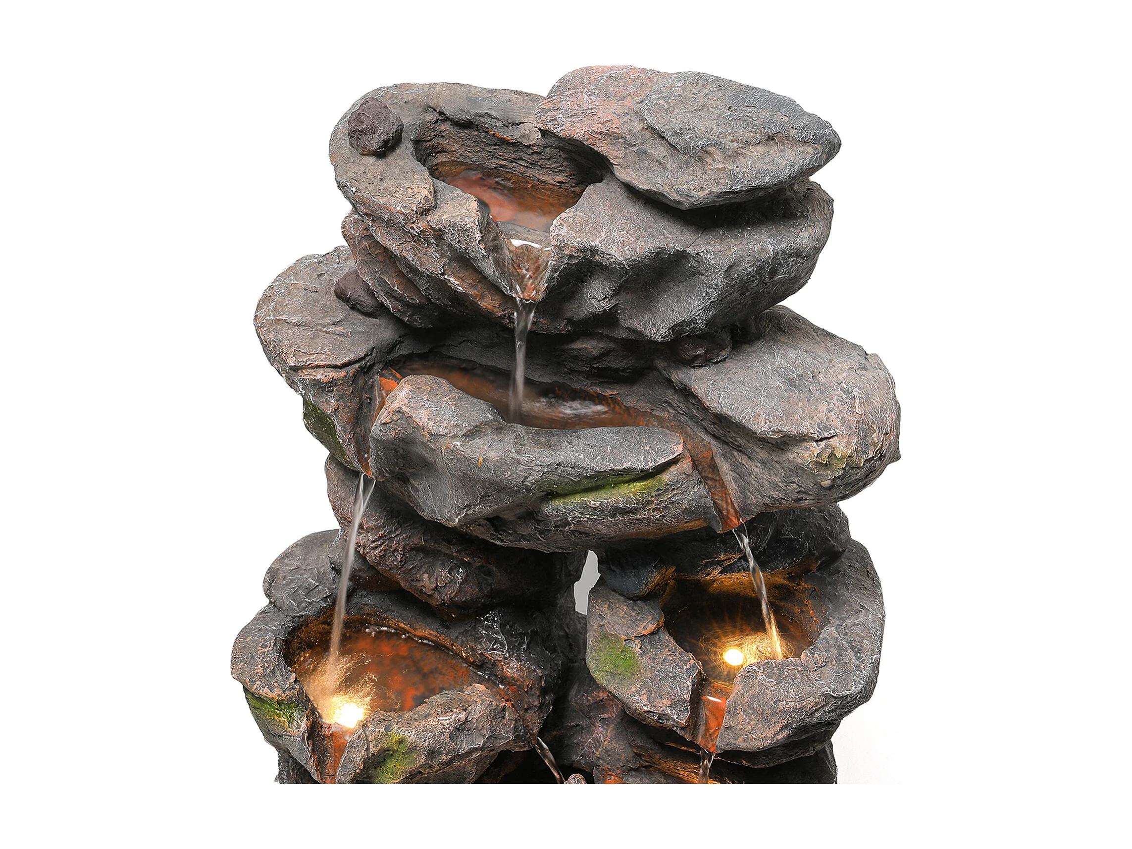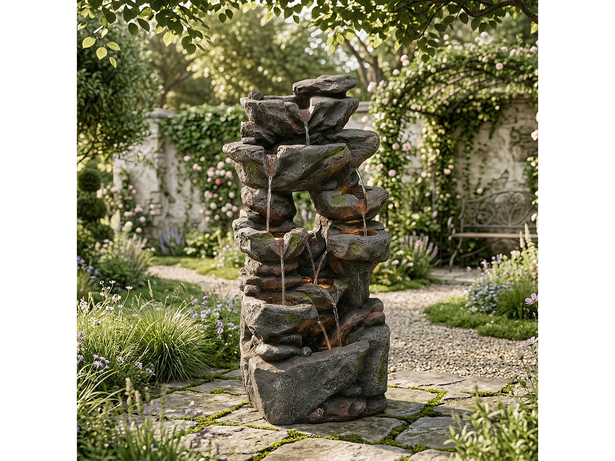Fontaine de Jardin Cascade de Rochers avec LED - Sculpture d'Eau Naturelle en Résine de Fibre de Verre - Pompe Haute Performance 800L/h - Gris Anthracite