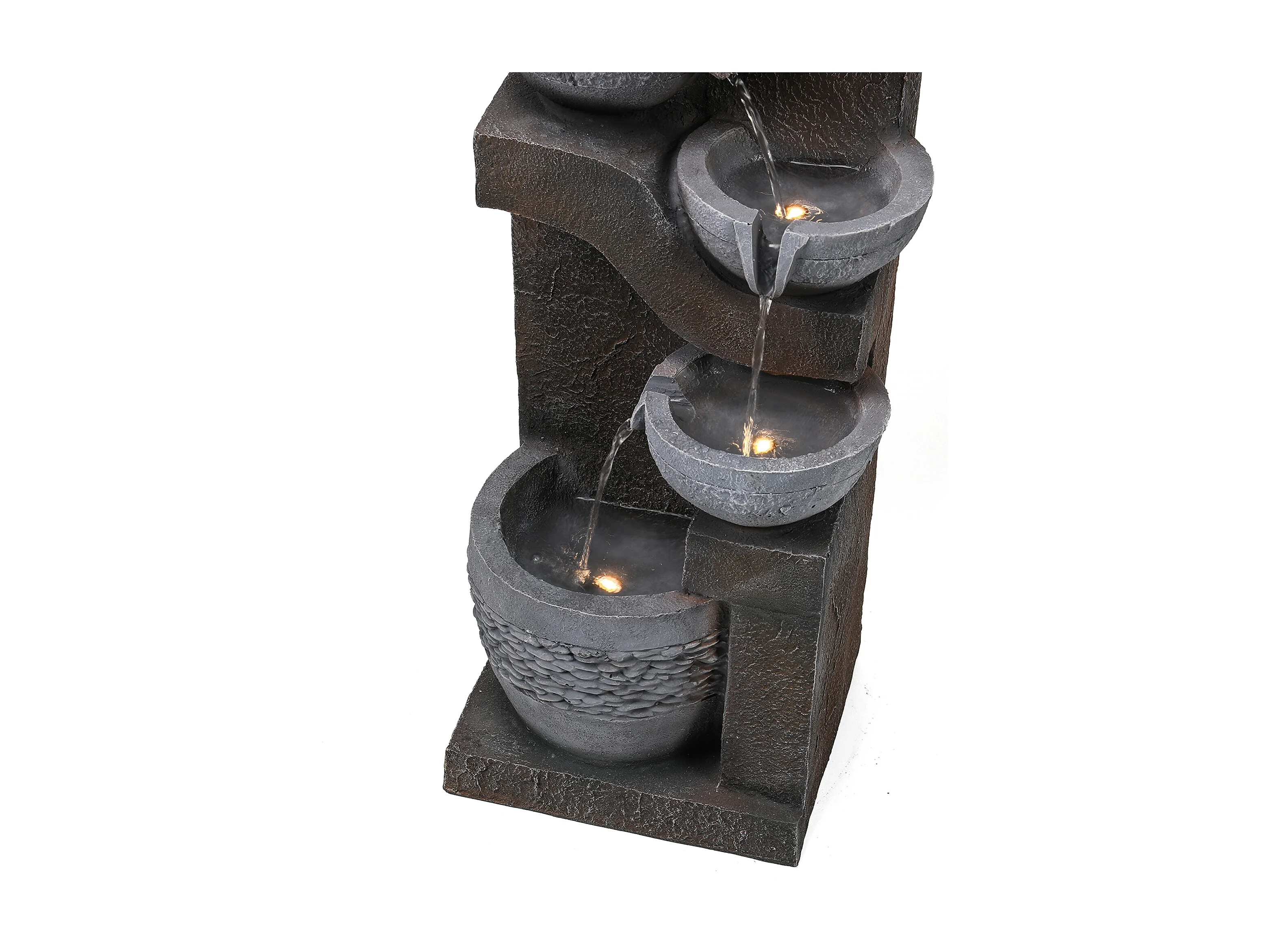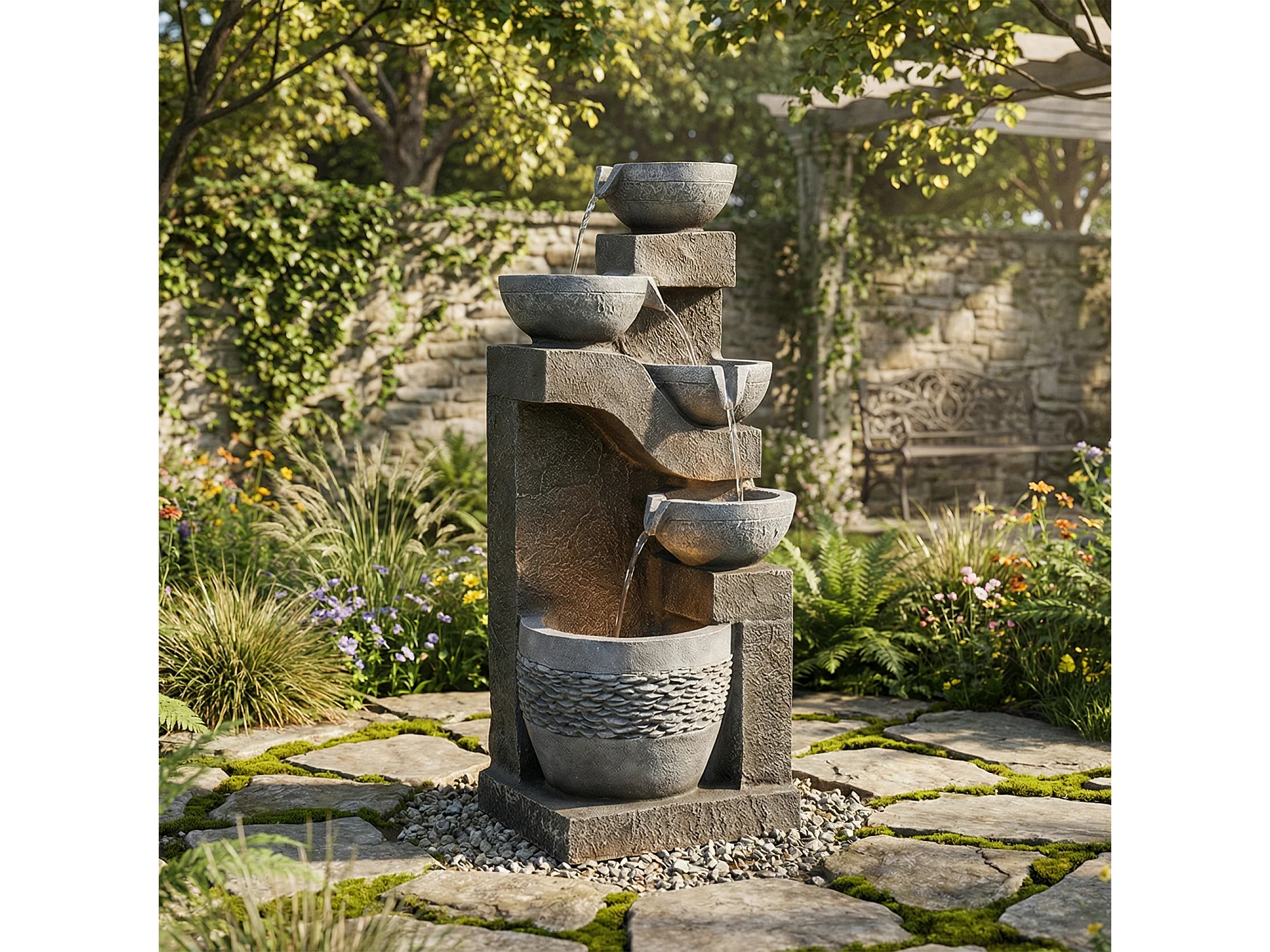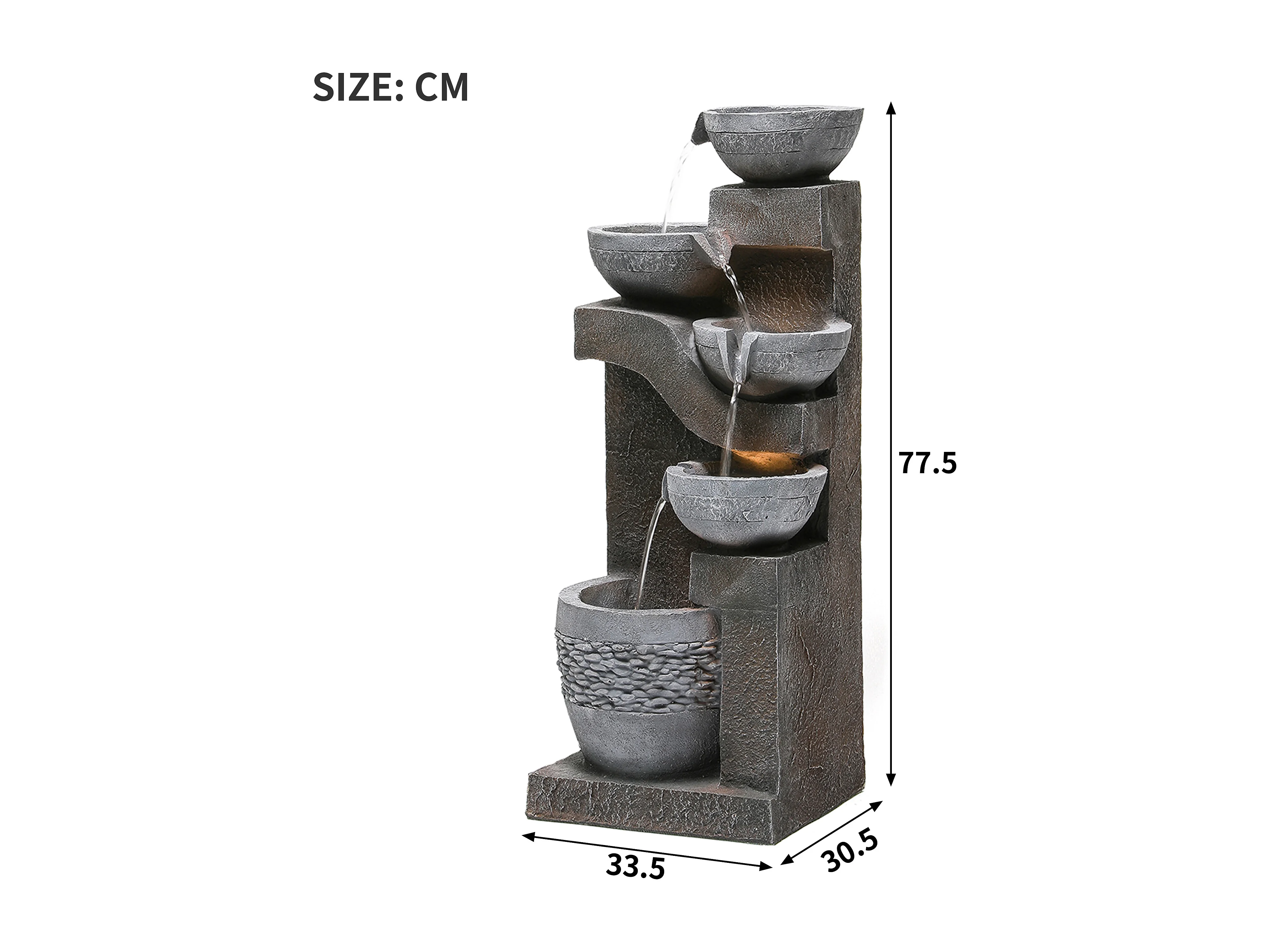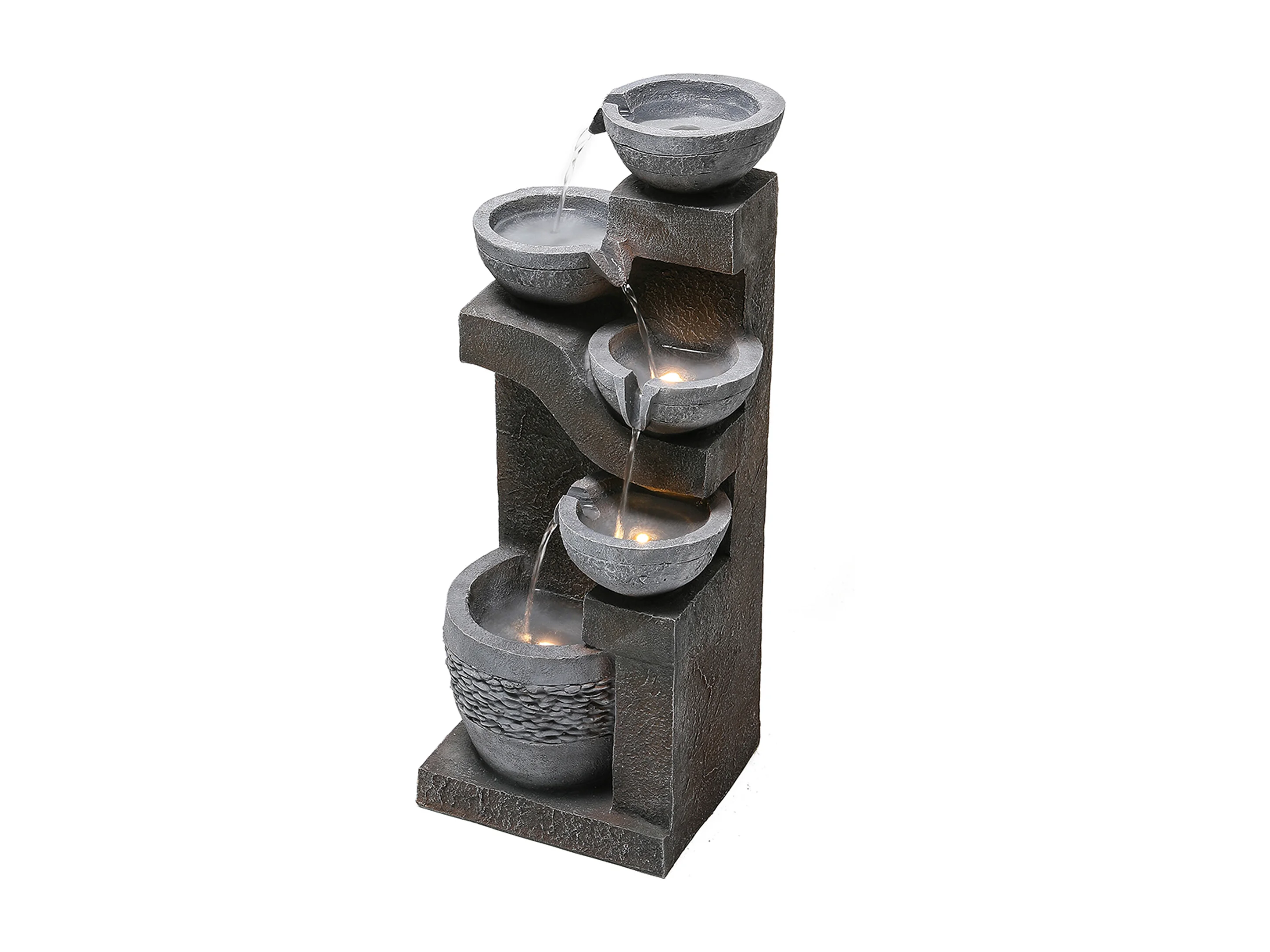 Fontaine de Jardin Cascade LED à 5 Niveaux - Design Moderne en Résine de Fibre de Verre Aspect Pierre - Pompe Incluse - Décoration Extérieur - Gris