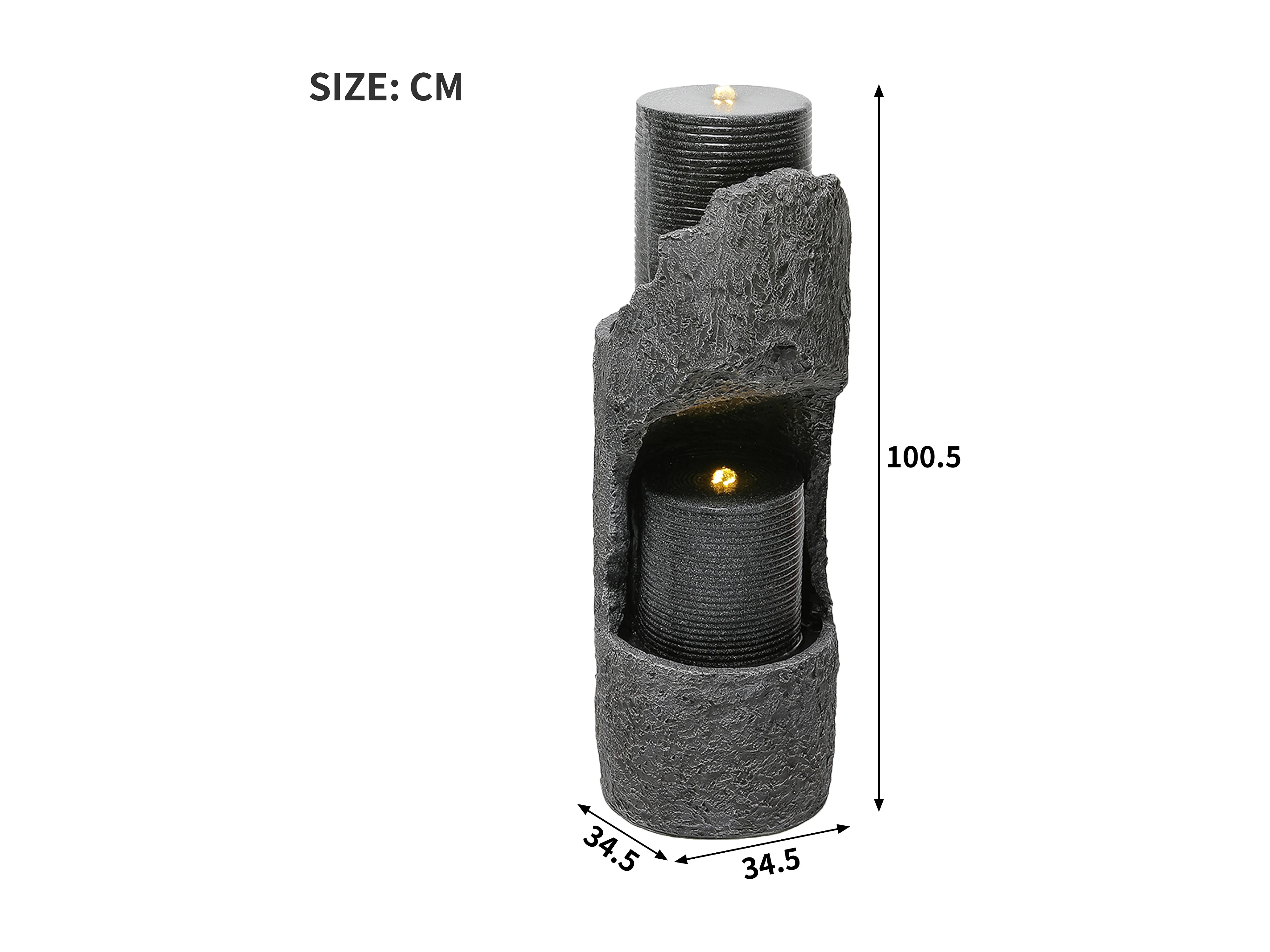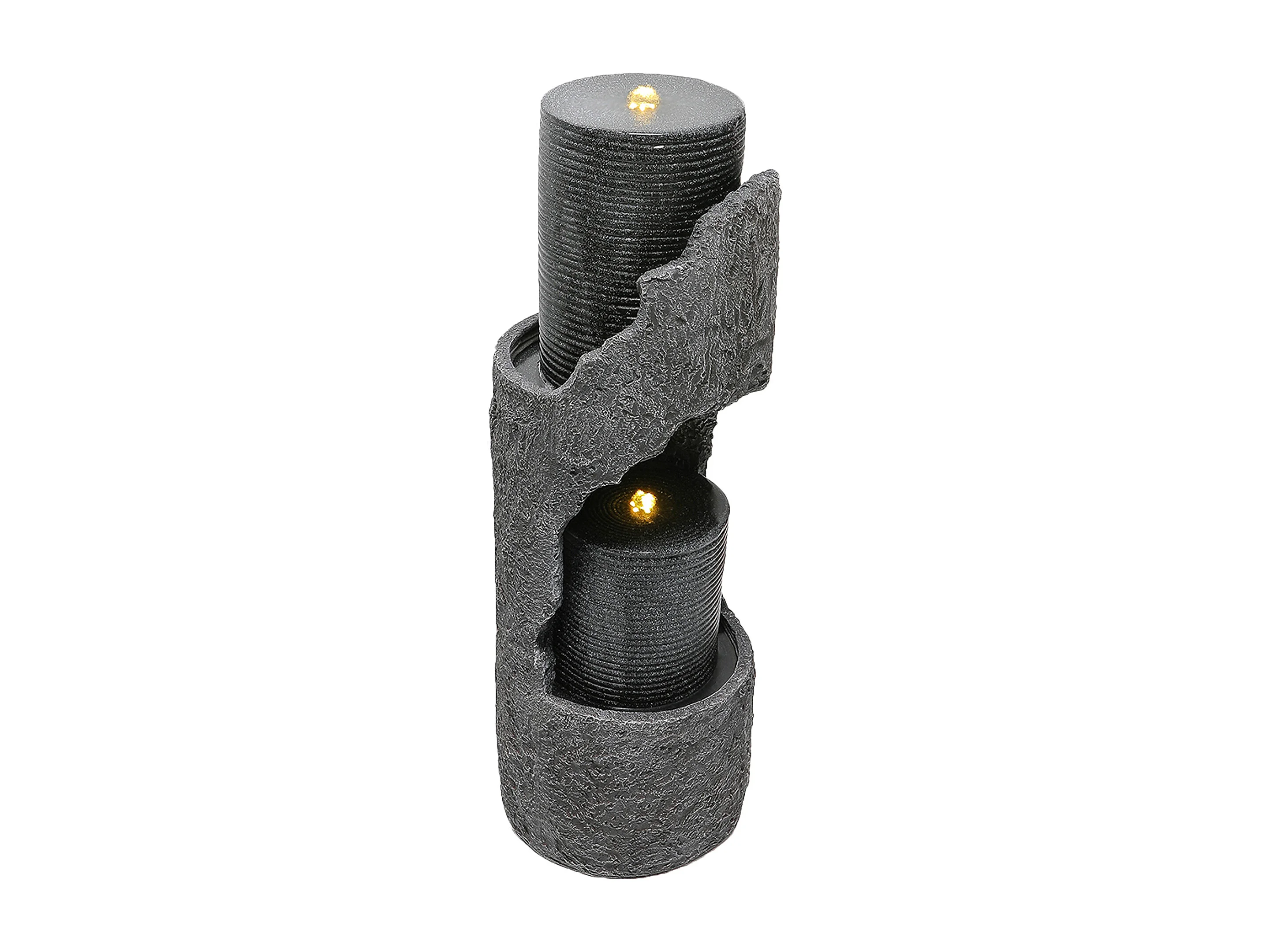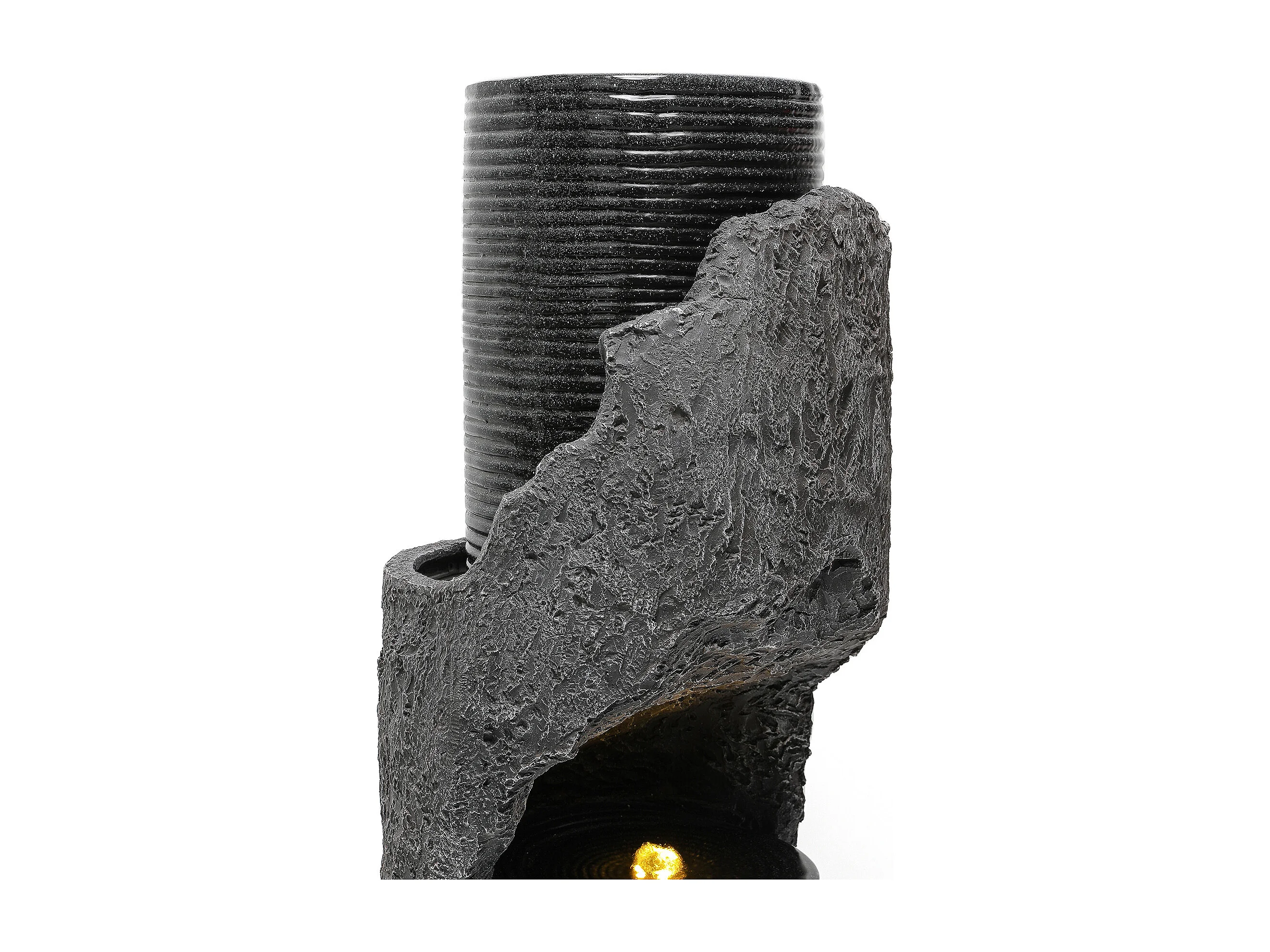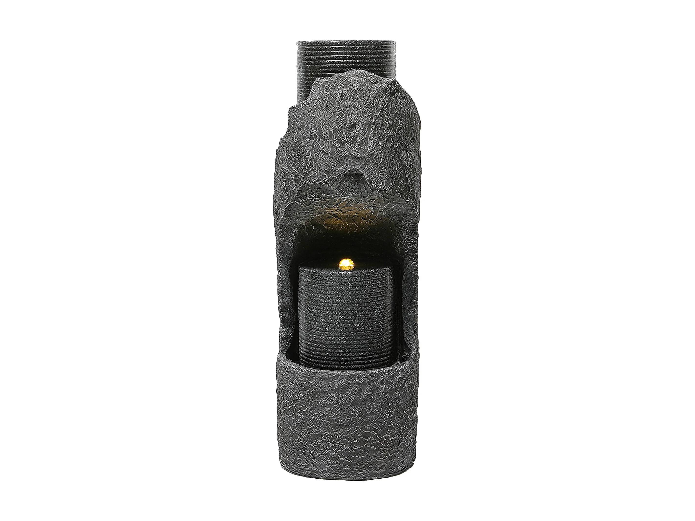 Fontaine de Jardin Colonne Design avec LED - Sculpture Aquatique en Résine de Fibre de Verre Aspect Pierre - Pompe Puissante 800L/h - Anthracite