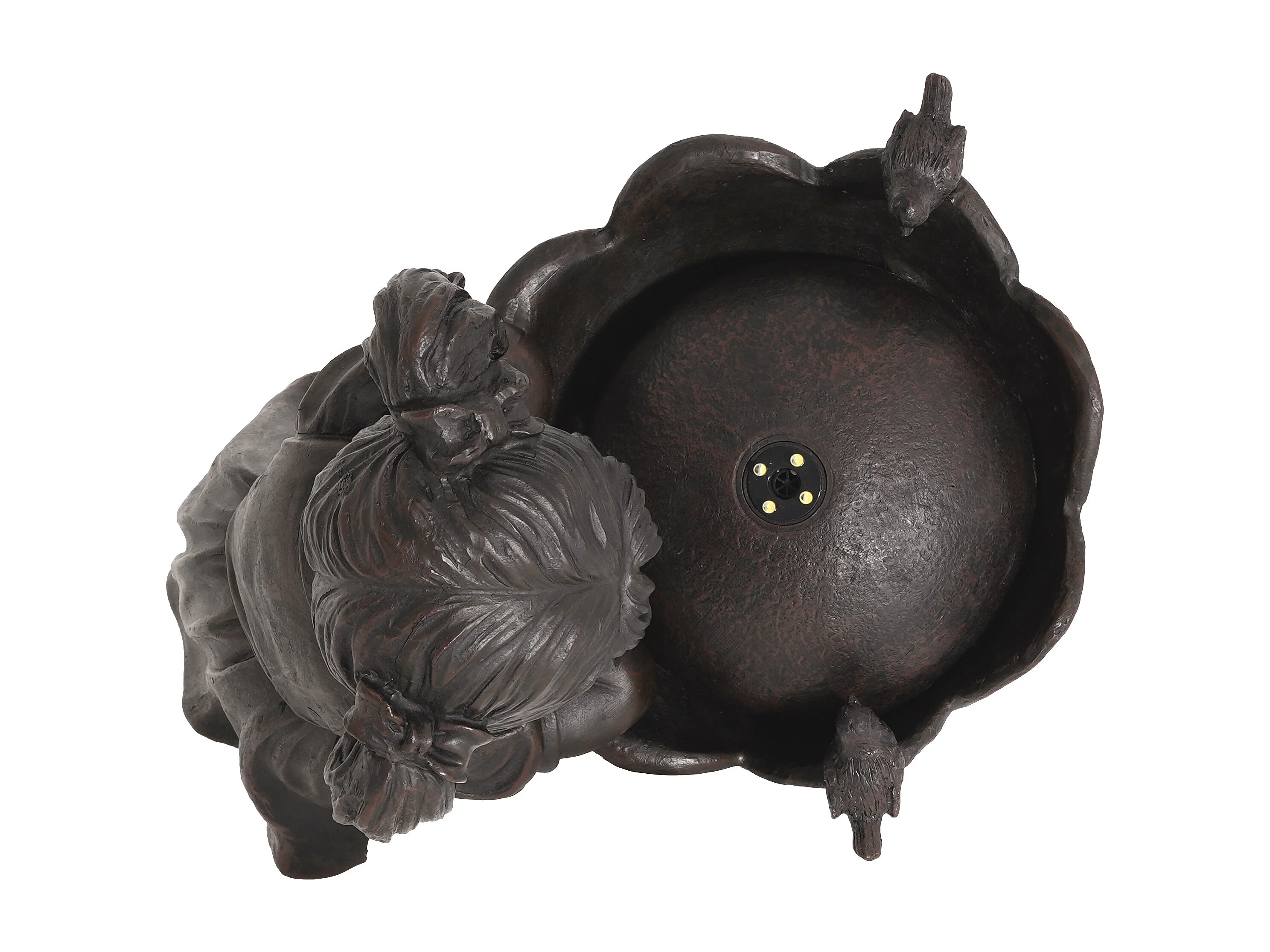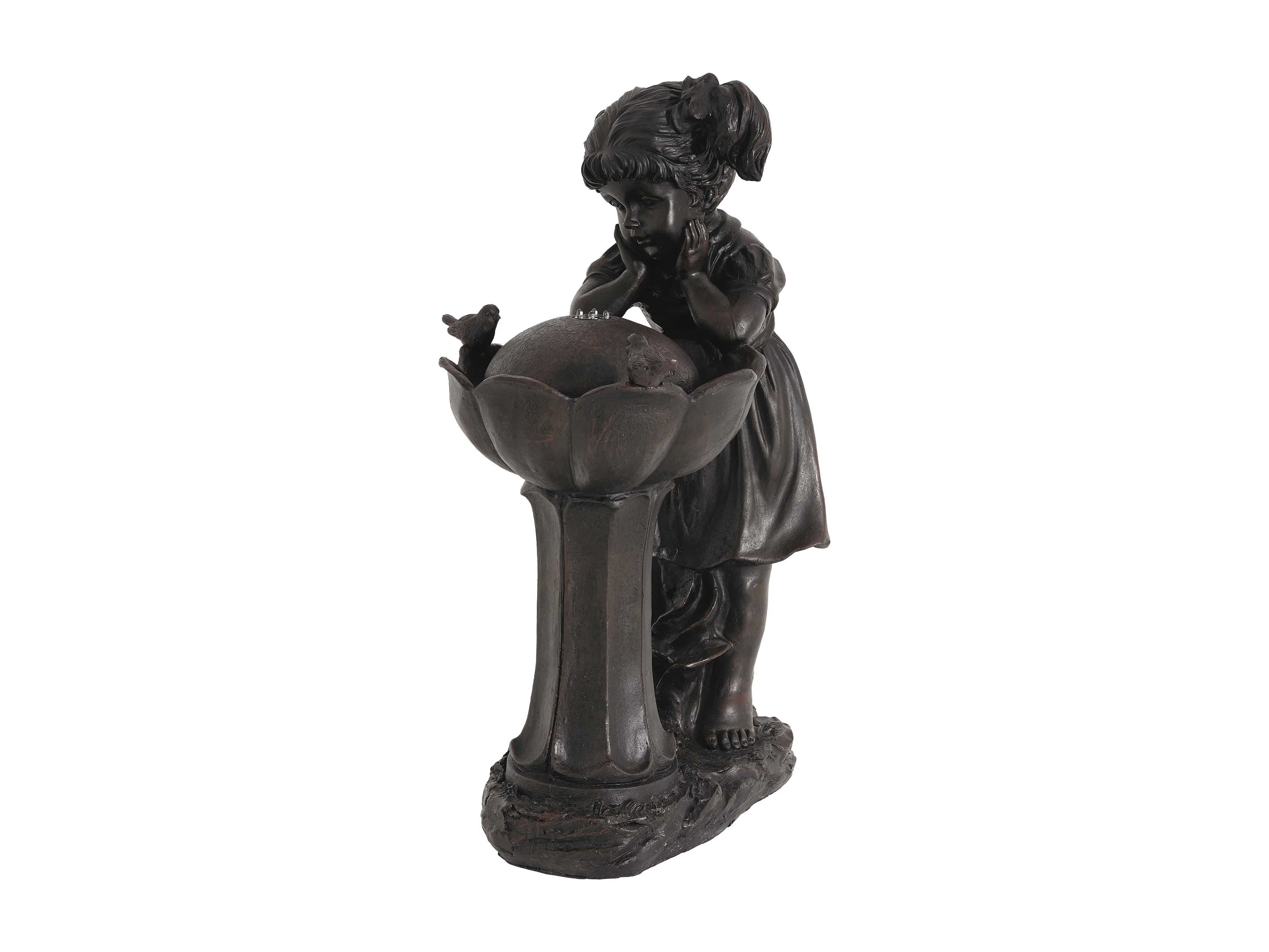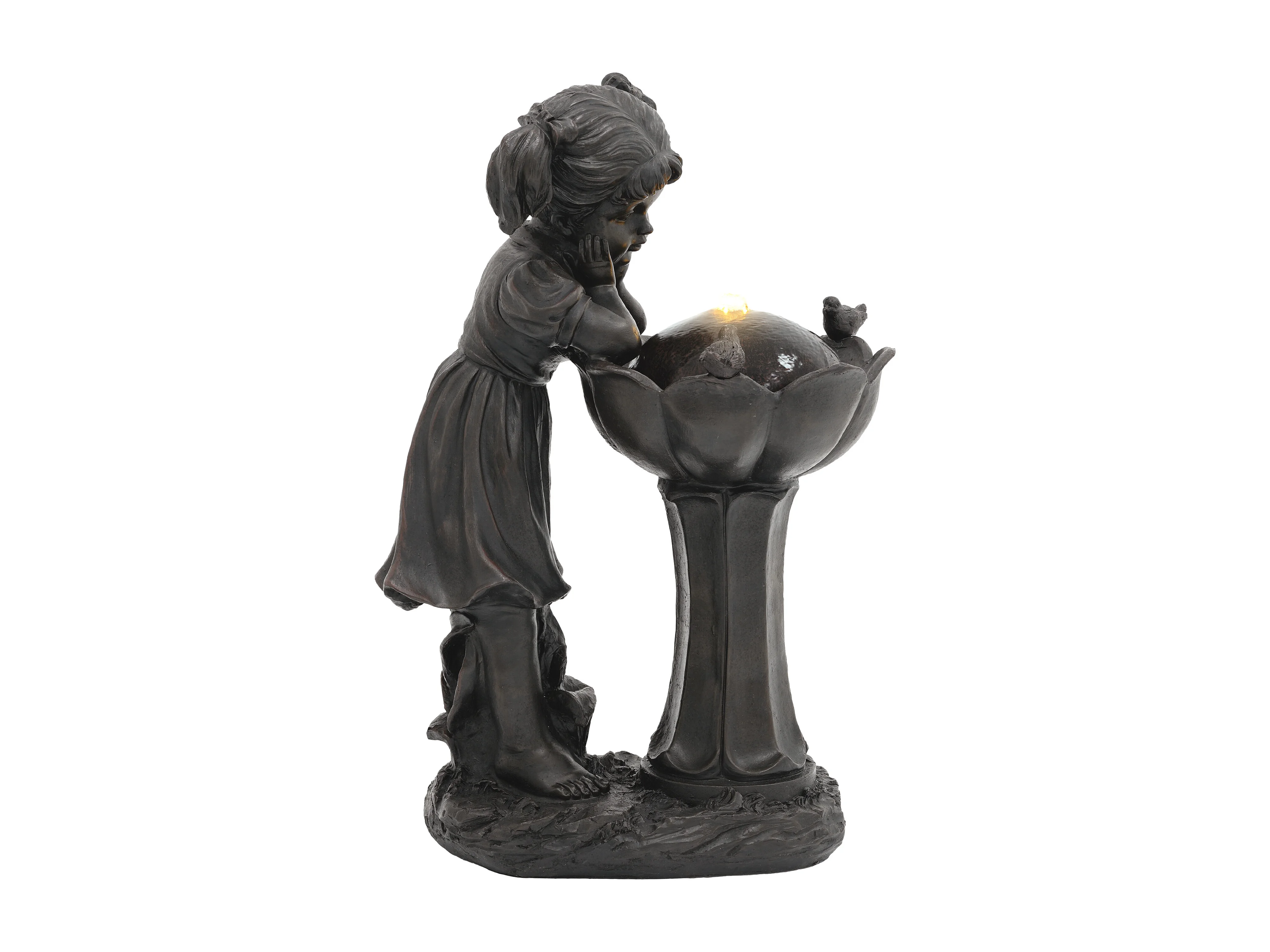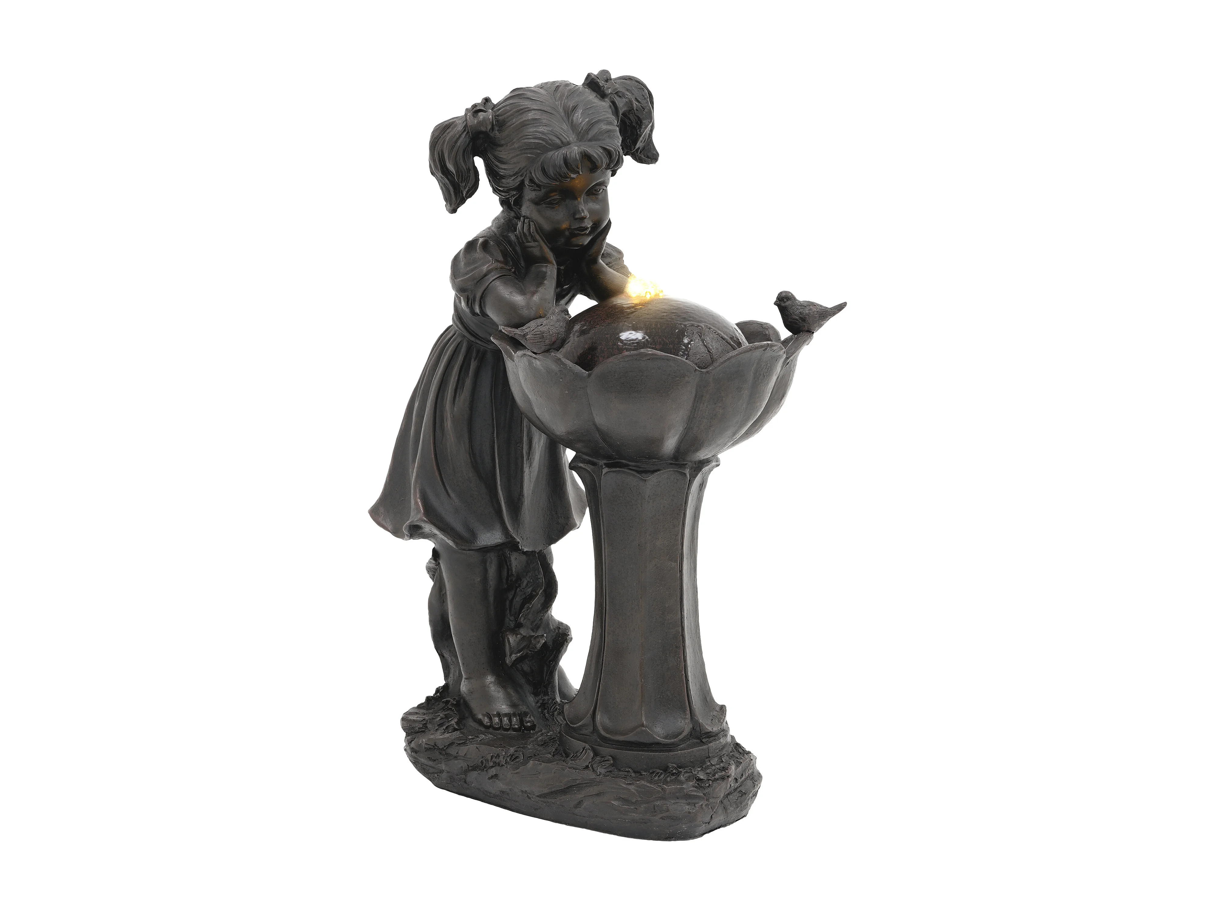 Fontaine de Jardin Figurine Fille et Oiseaux avec Éclairage LED - Cascade d'Extérieur Design Romantique en Résine - 30x42x65,5cm - Bronze Antique