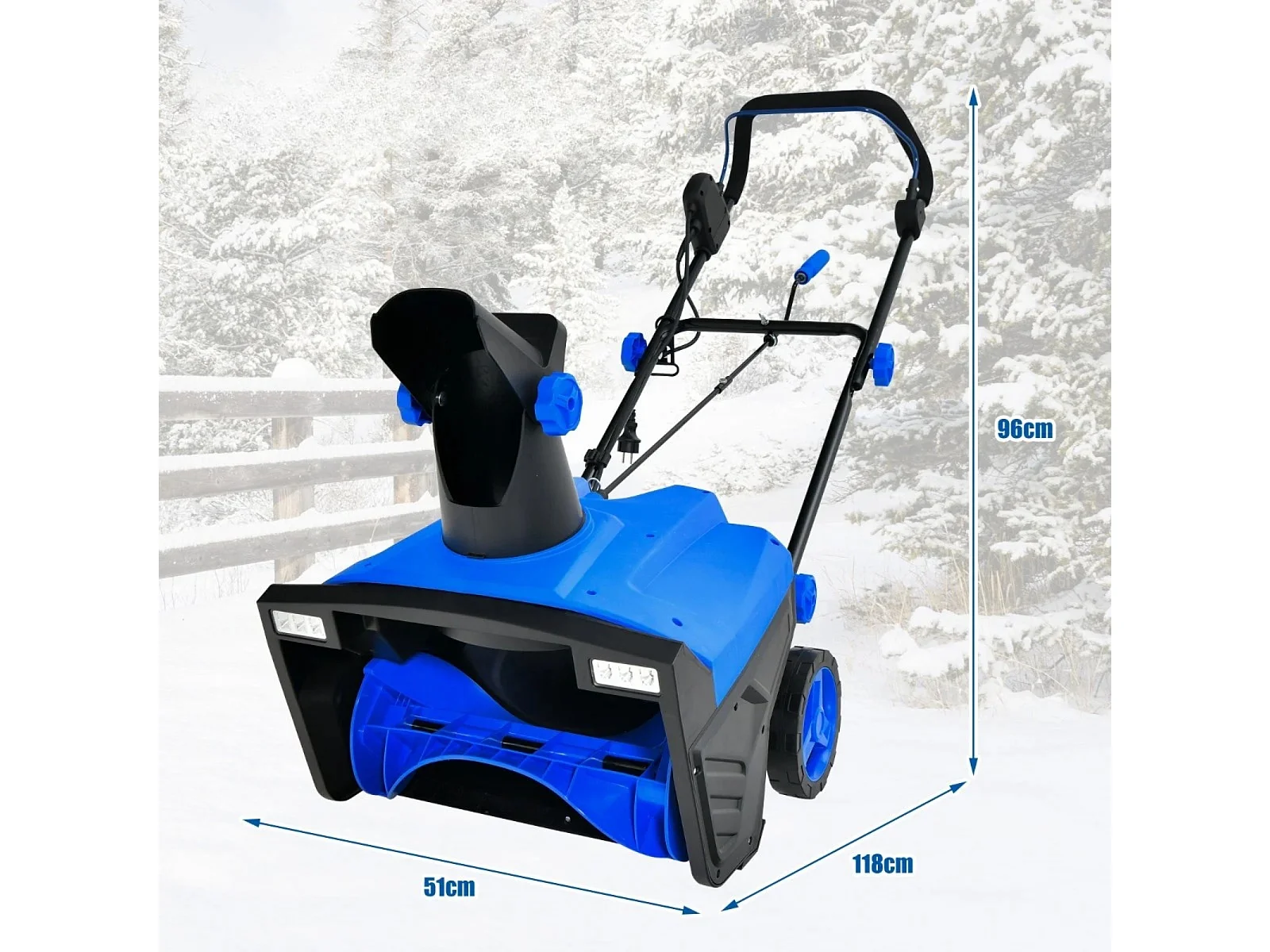 Fraise à neige électrique avec lampes LED Déblayeuse 118 x 51 x 96 cm Bleu + Noir