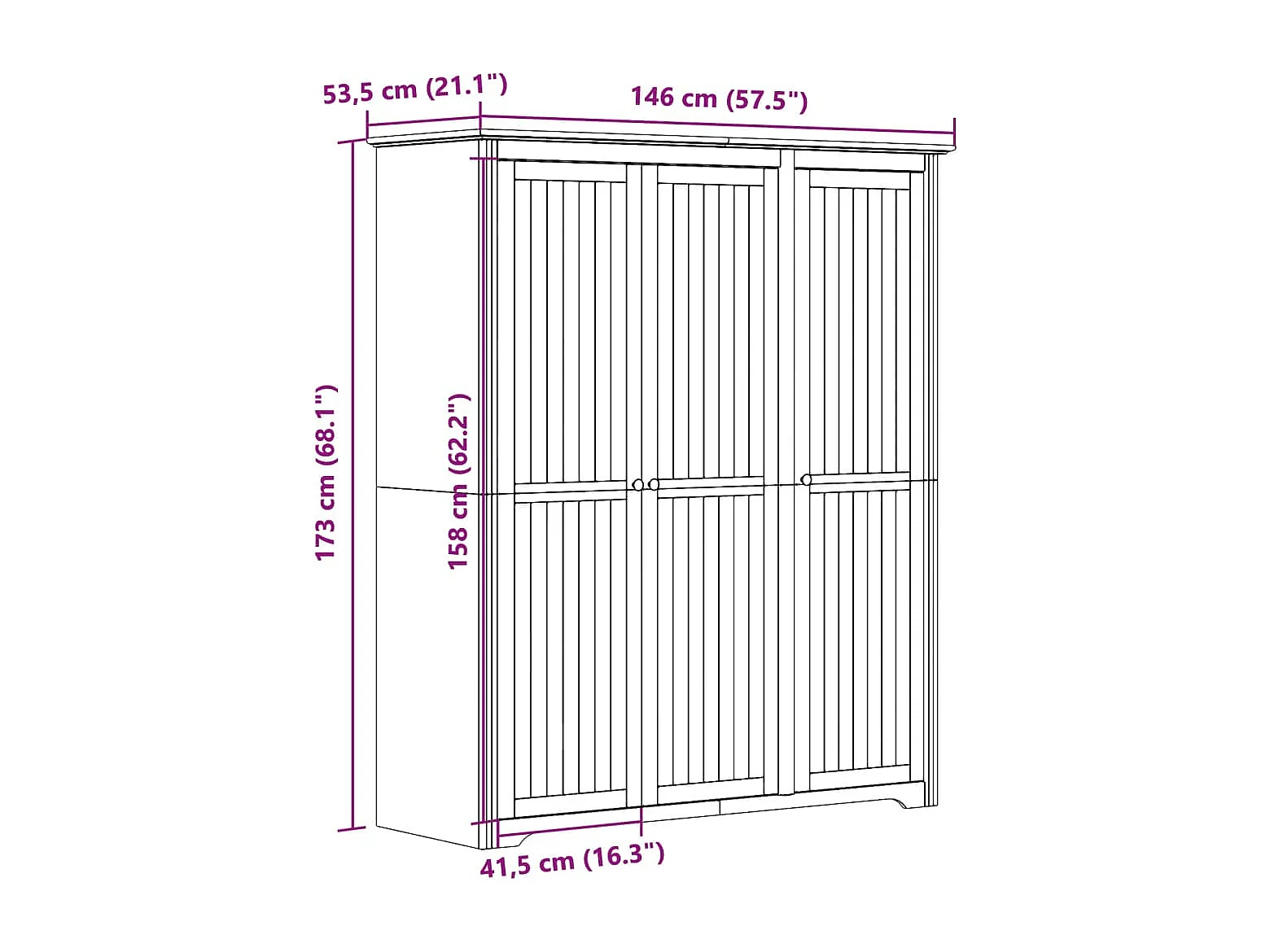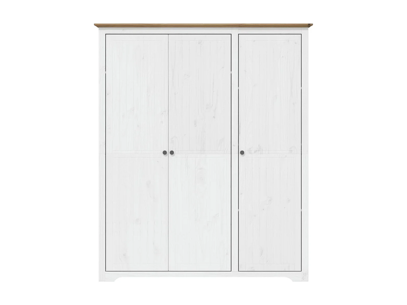 Garde-robe BODO blanc marron 146x53,5x173 cm bois massif de pin