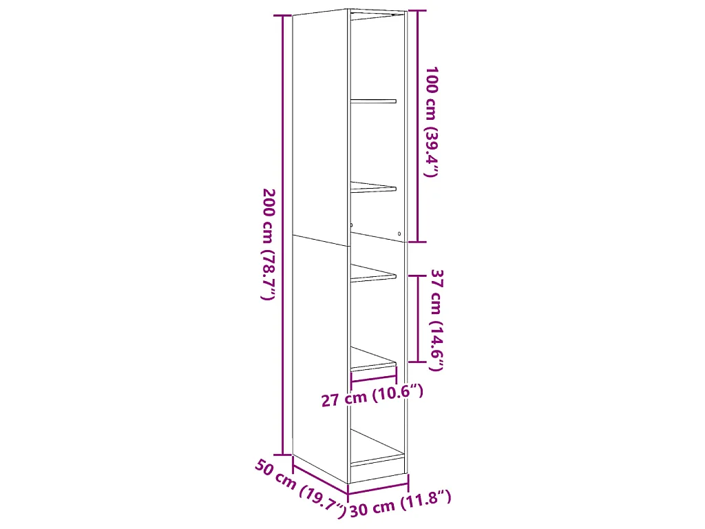 Garde-robe chêne artisanal 30x50x200 cm bois d'ingénierie