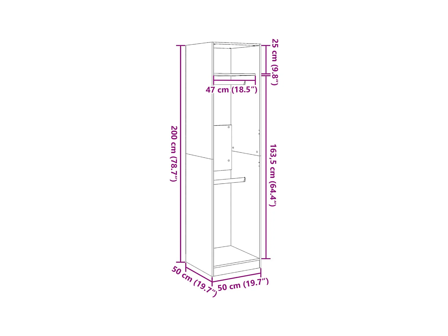 Garde-robe chêne artisanal 50x50x200 cm bois d'ingénierie