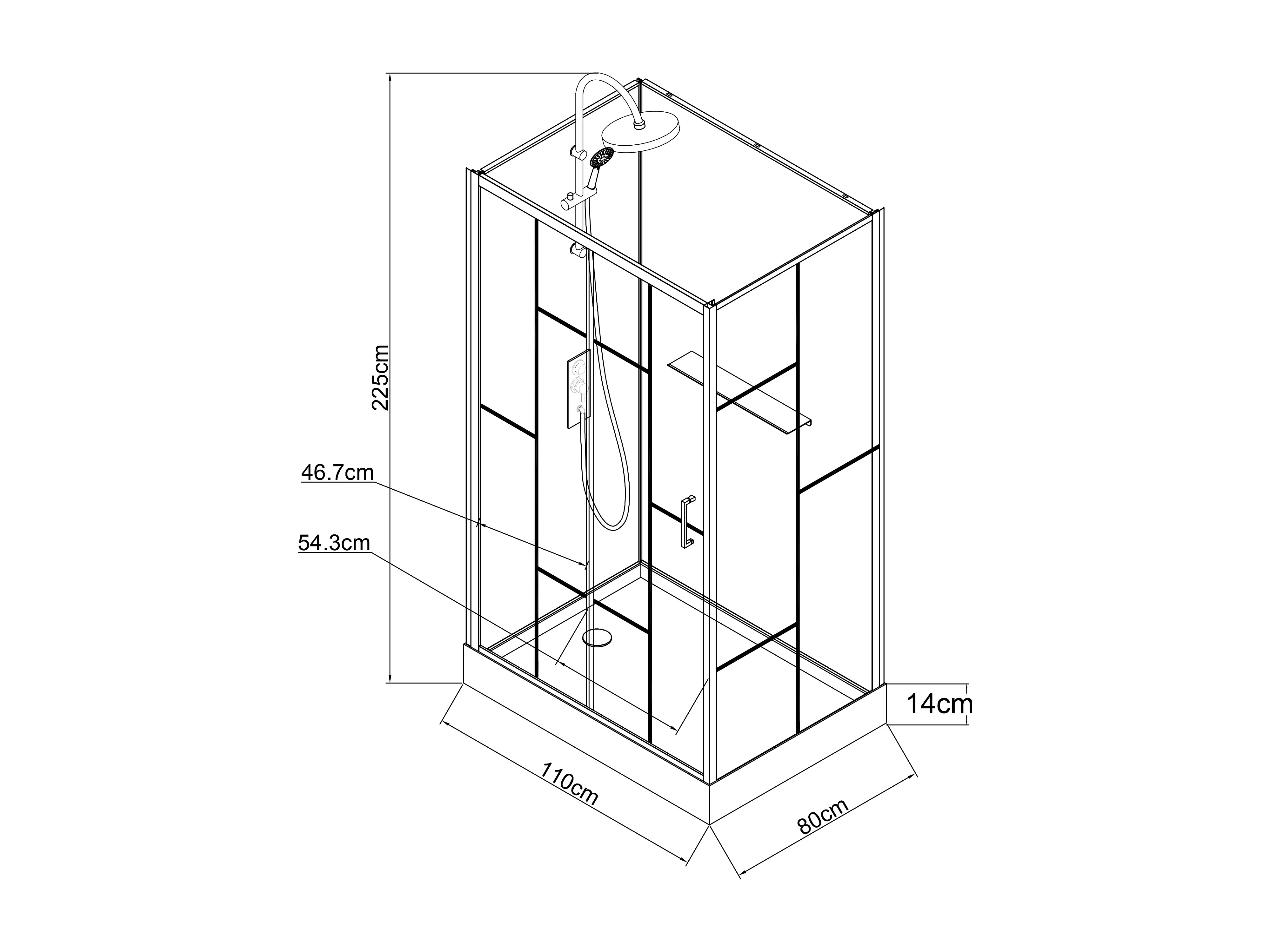 Cabine de douche rectangulaire sérigraphiée - Installation réversible - Blanc et Noir mat - L110 x l80 x H225 cm - GAVILA
