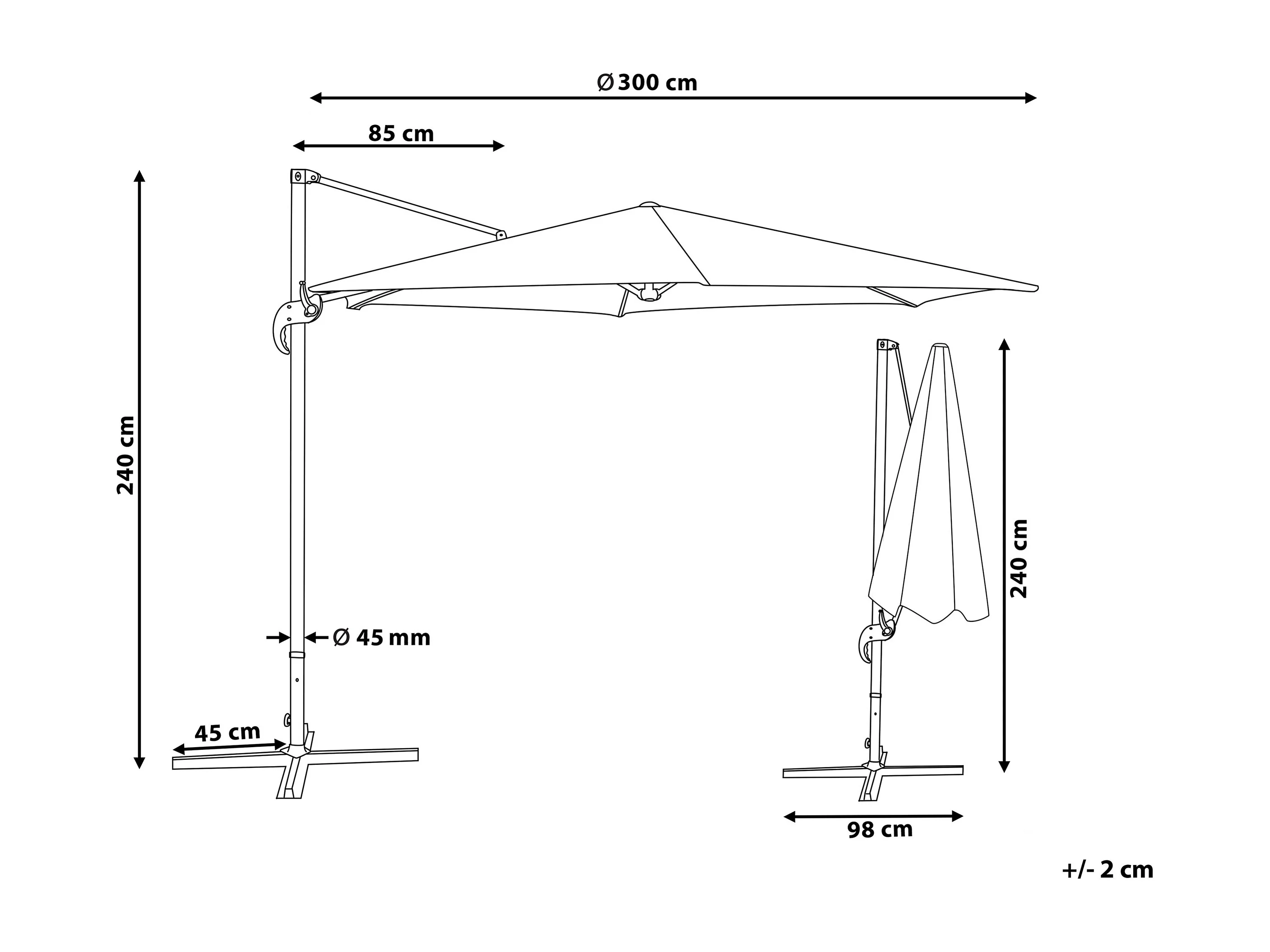 Parasol déporté 300 cm SAVONA Gris foncé Gris