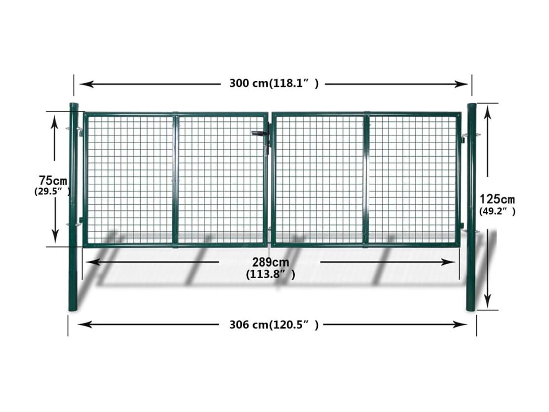Portail de clôture en acier 306 x 125 cm Vert