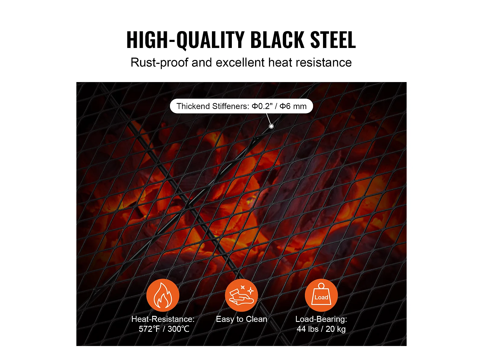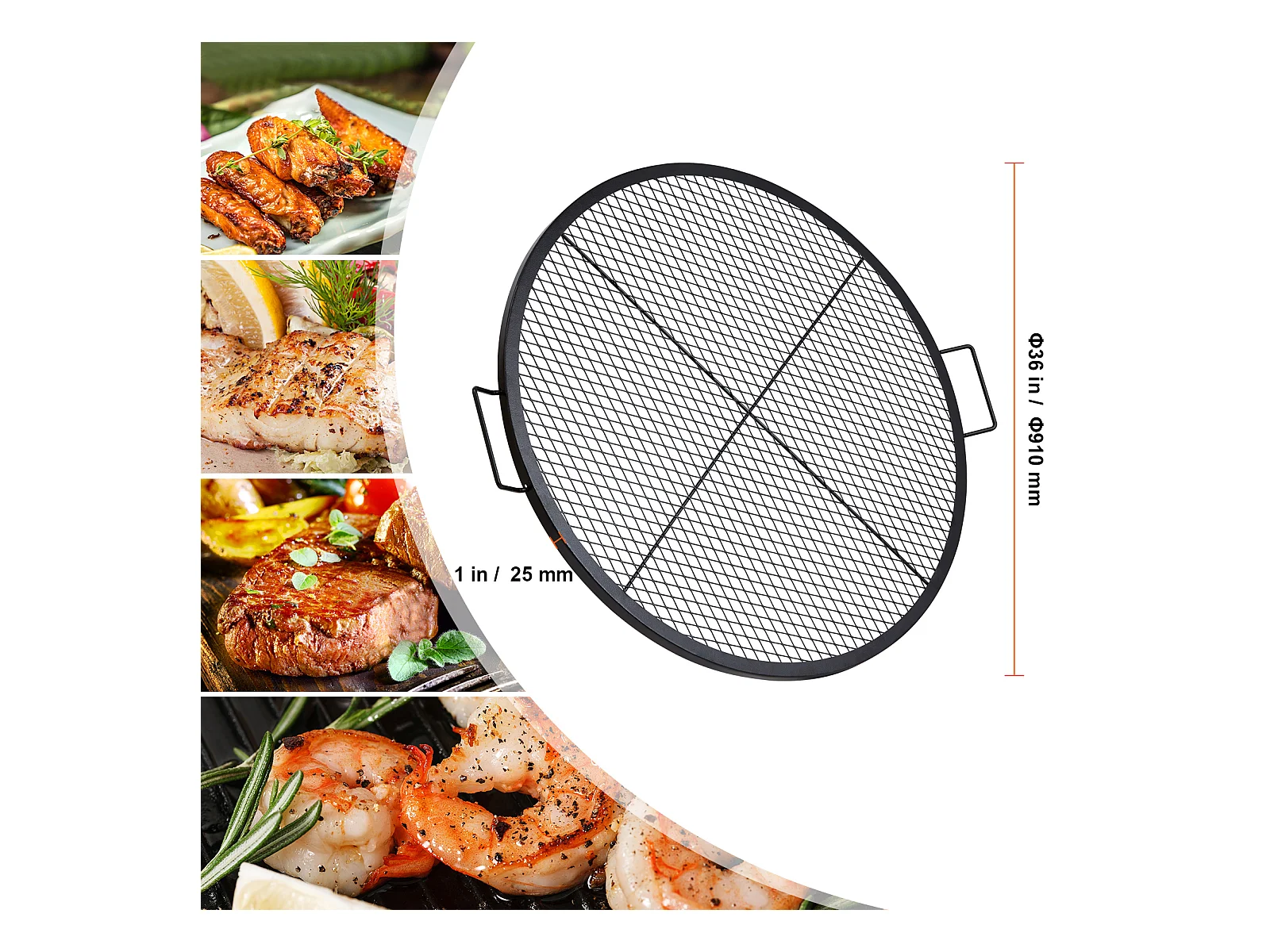 Grille de Cuisson Ronde SucceBuy de 91.44CM, Grille de Barbecue en Acier Robuste avec Poignée et Support en Fil X, Noir