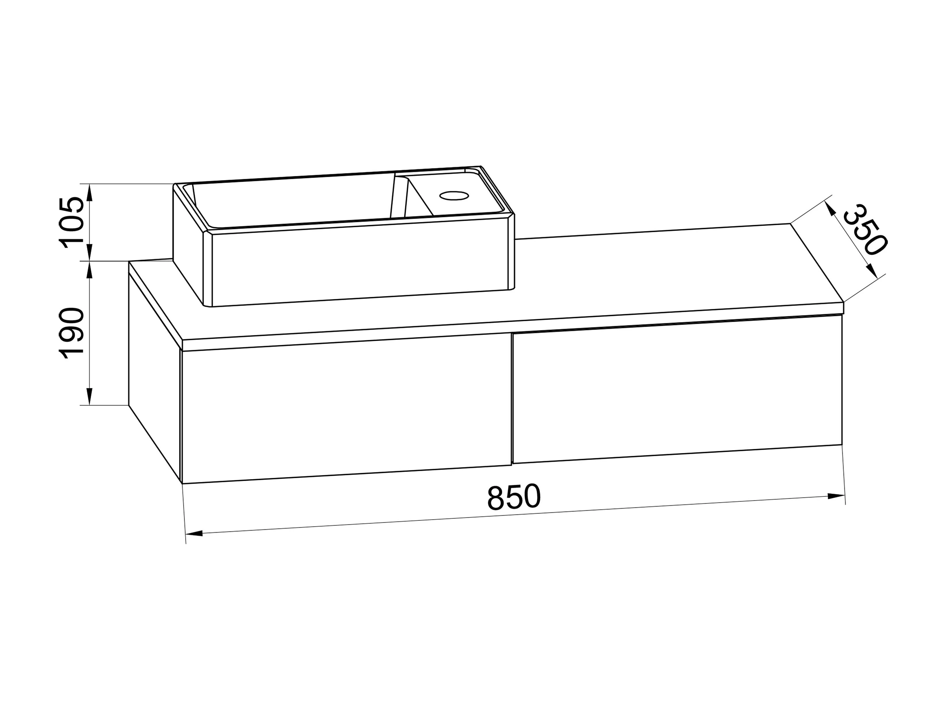 Bathroom furniture washbasin Gudas Black H. 19 x W. 85 x D. 35 cm