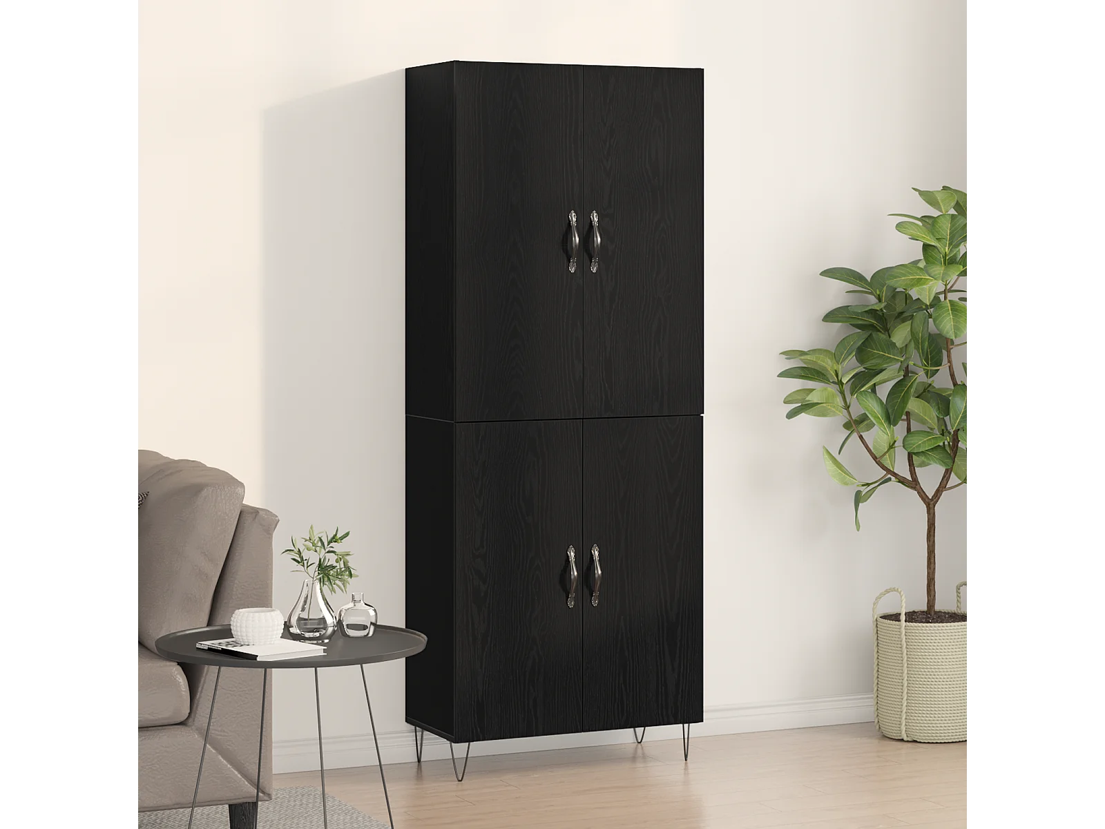 Highboard Chêne Noir 69,5x34x180 cm Bois d'Ingénierie