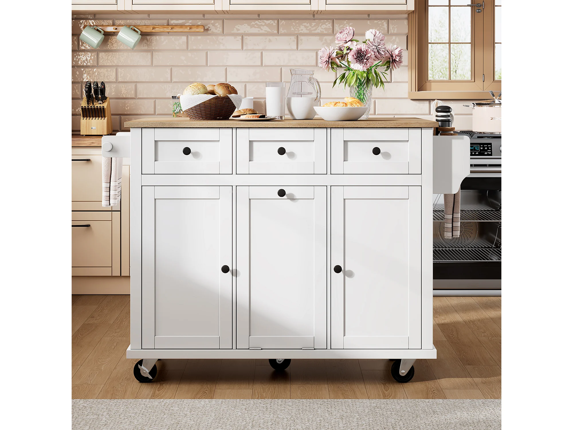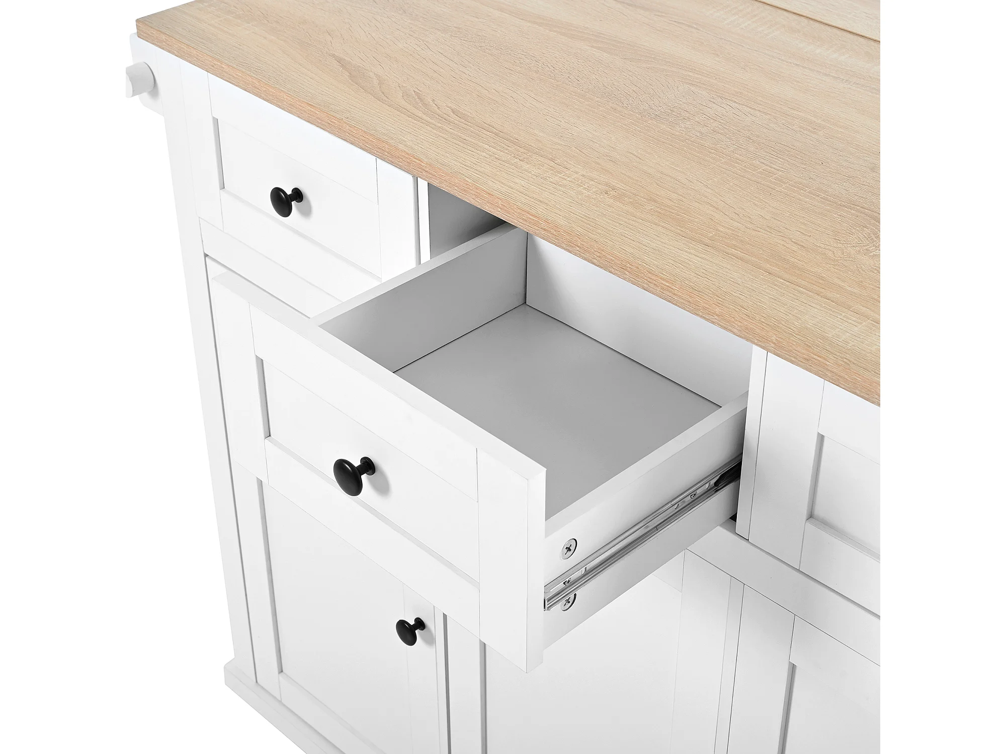 Ilot central de cuisine mobile 126x46.8x94.2cm - avec roulettes - 3 tiroirs et 3 portes - plateau extensible - avec porte-serviettes - blanc