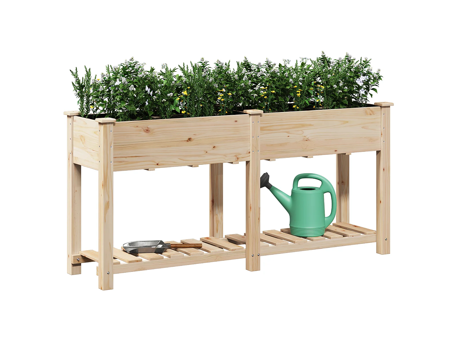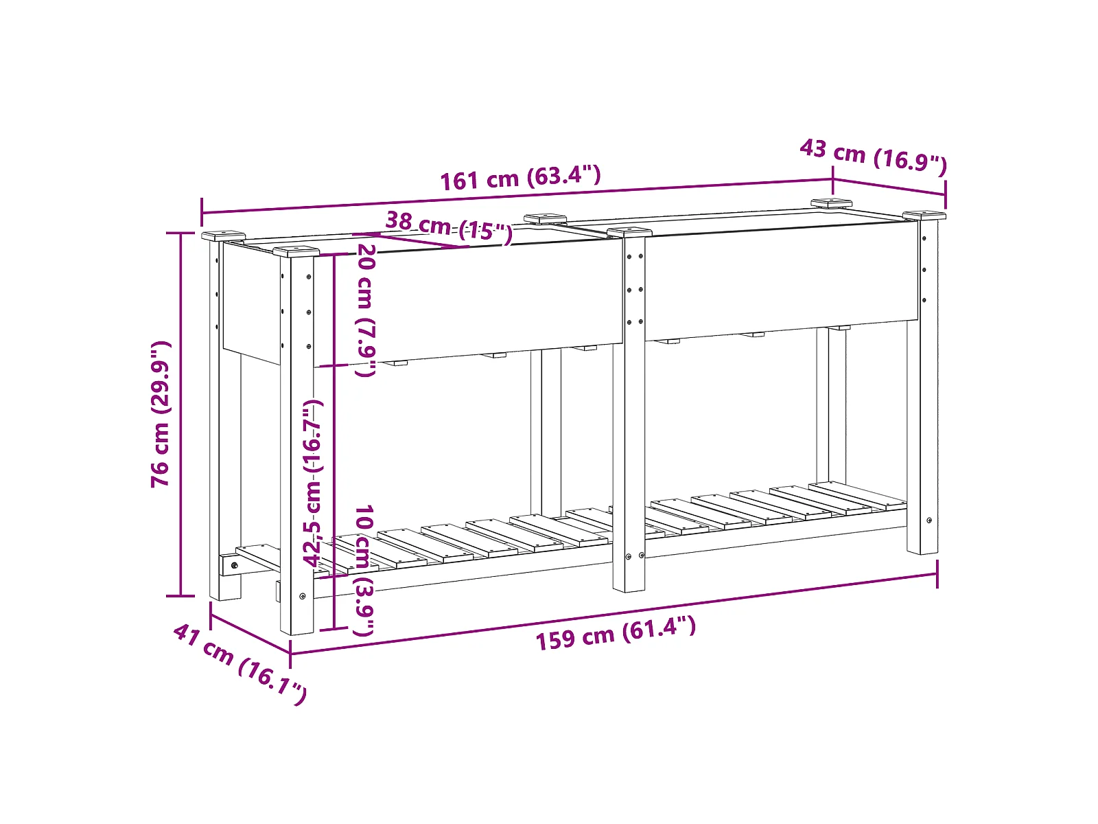 Jardinière avec étagère 161x43x76 cm en bois massif de sapin
