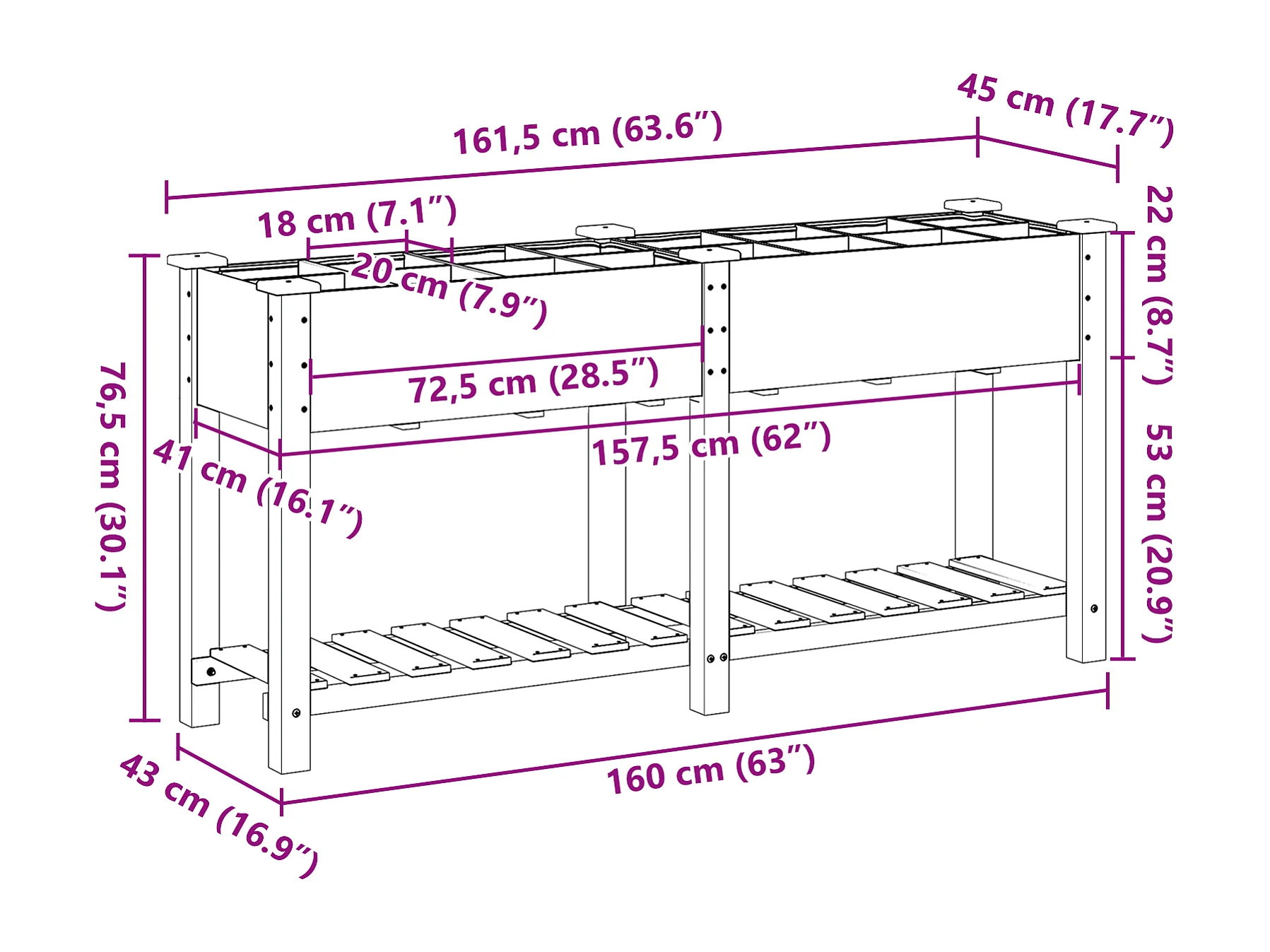Jardinière avec étagère 161x43x76 cm en bois massif de sapin