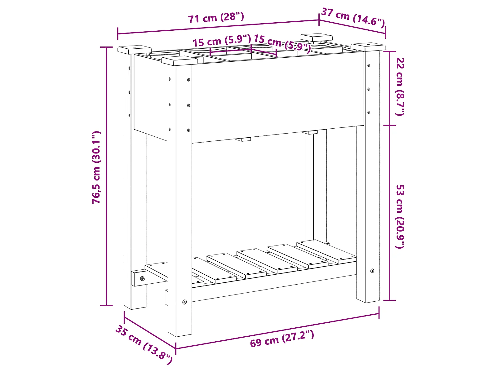 Jardinière avec étagère 161x43x76 cm en bois massif de sapin