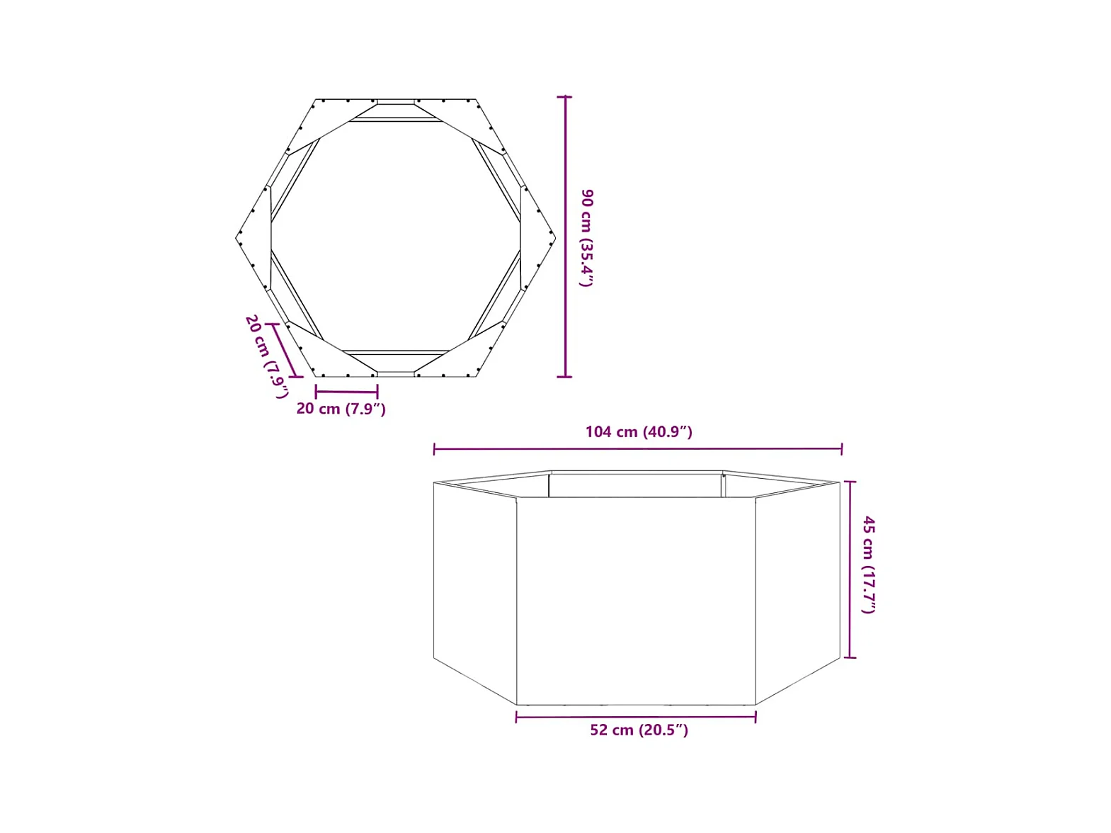 Jardinière hexagone 104x90x45 cm acier inoxydable