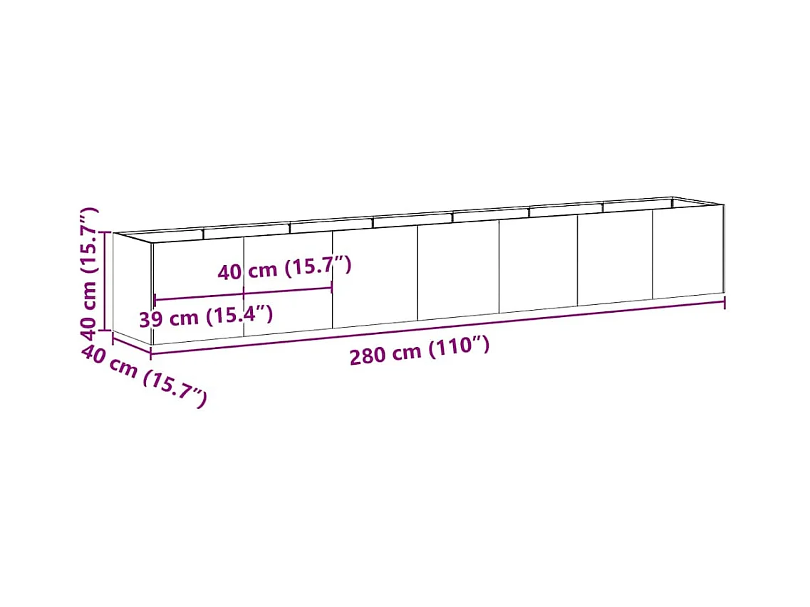 Jardinière noir 280x40x40 cm acier laminé à froid