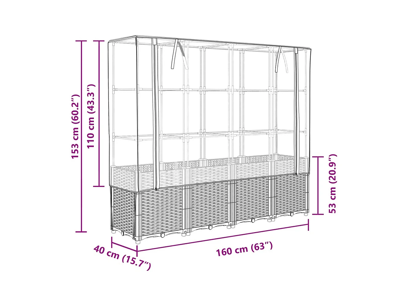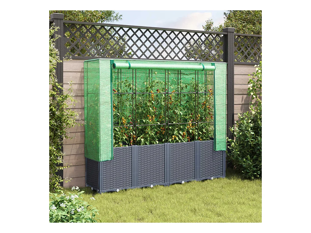 Jardinière surélevée avec housse aspect rotin 160x40x153 cm