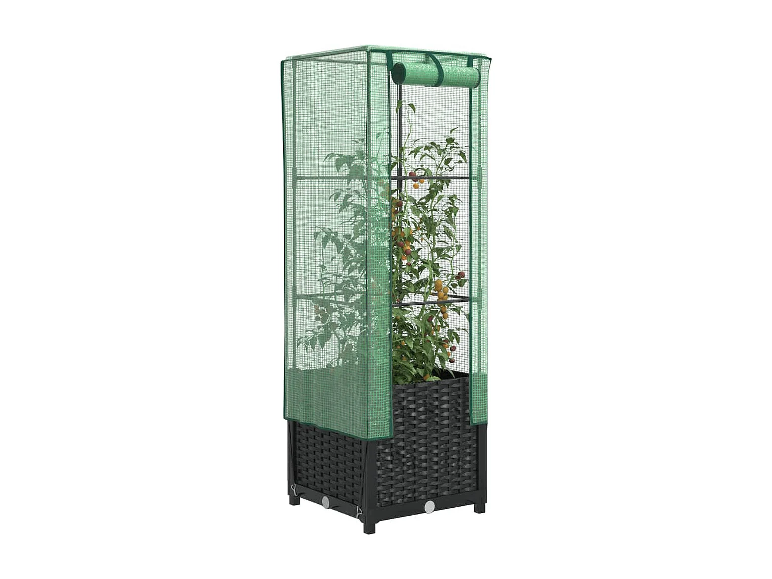 Jardinière surélevée avec housse aspect rotin 40x40x139 cm