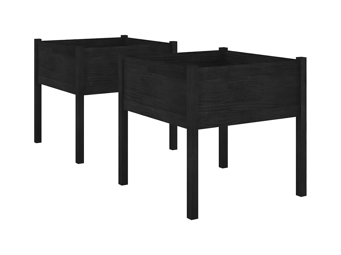 Jardinières 2 pcs Noir 70x70x70 cm Bois de pin massif