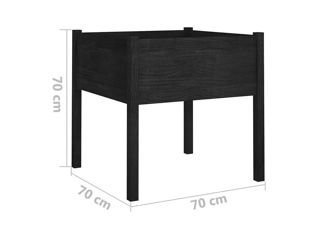 Jardinière Noir 50x50x70 cm Bois de pin massif