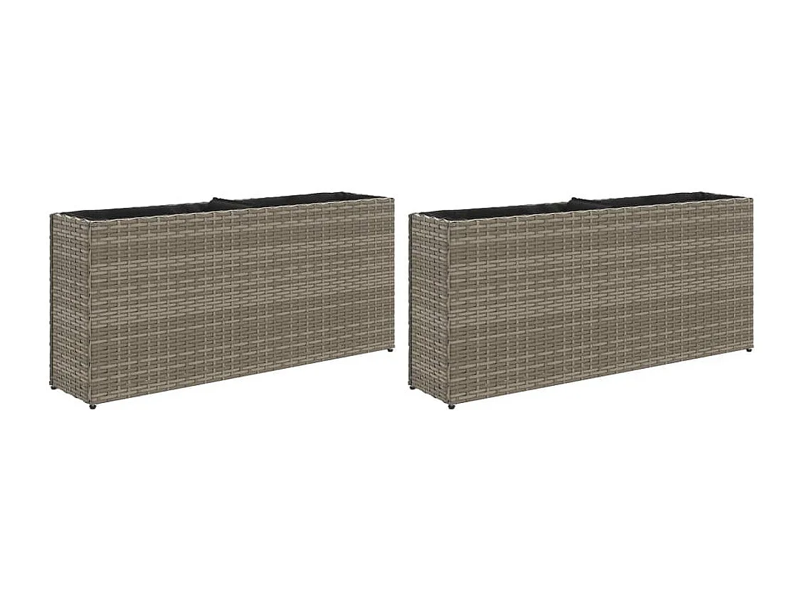 Jardinières avec 2 pots 2 pcs gris 90x20x40 cm résine tressée