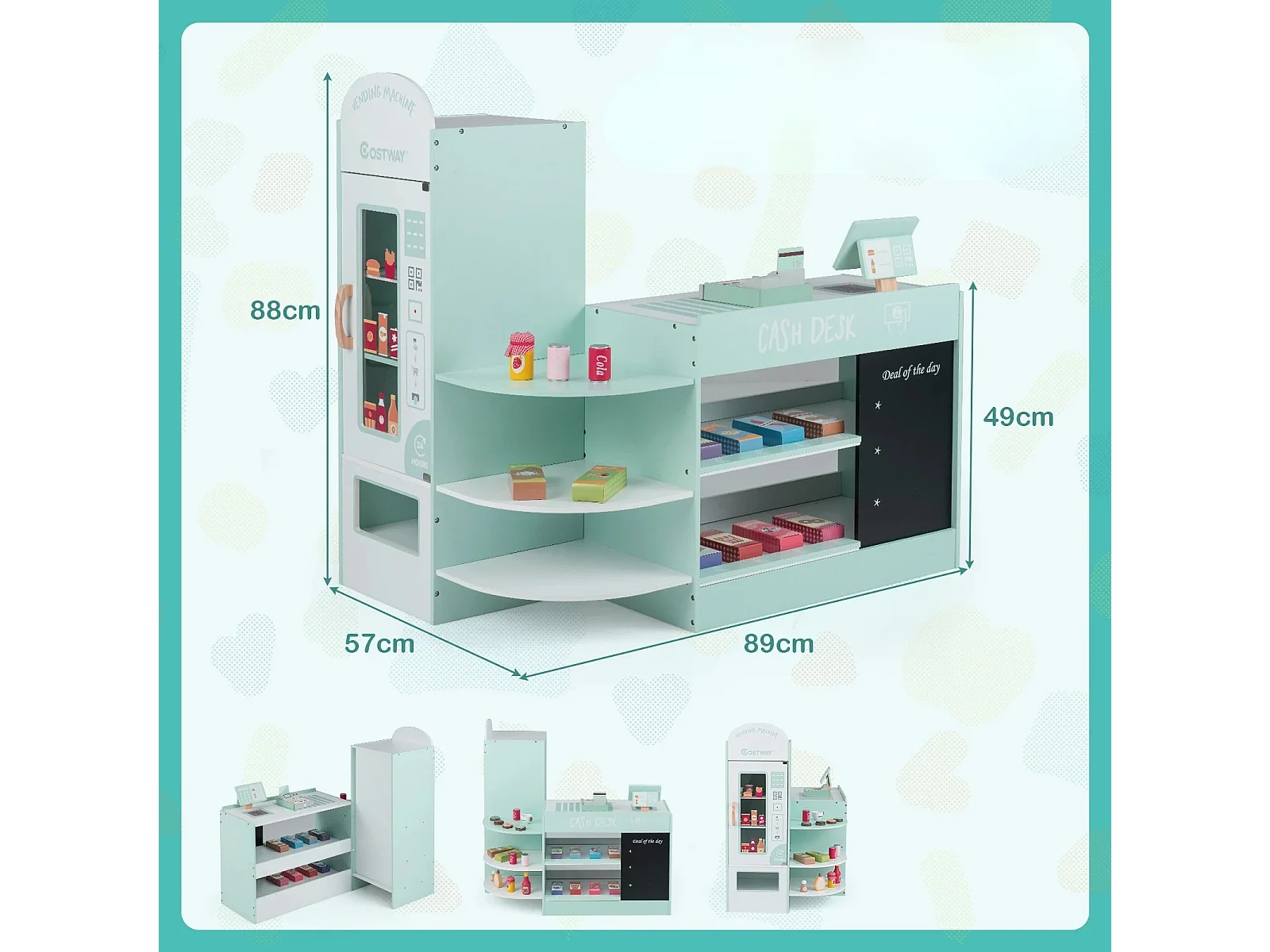 Jeu d'Épicerie pour Enfants de 3 à 8 Ans Ensemble de Jouets de Caisse Enregistreuse Machine de Point de Vente Distributeur Automatique Vert