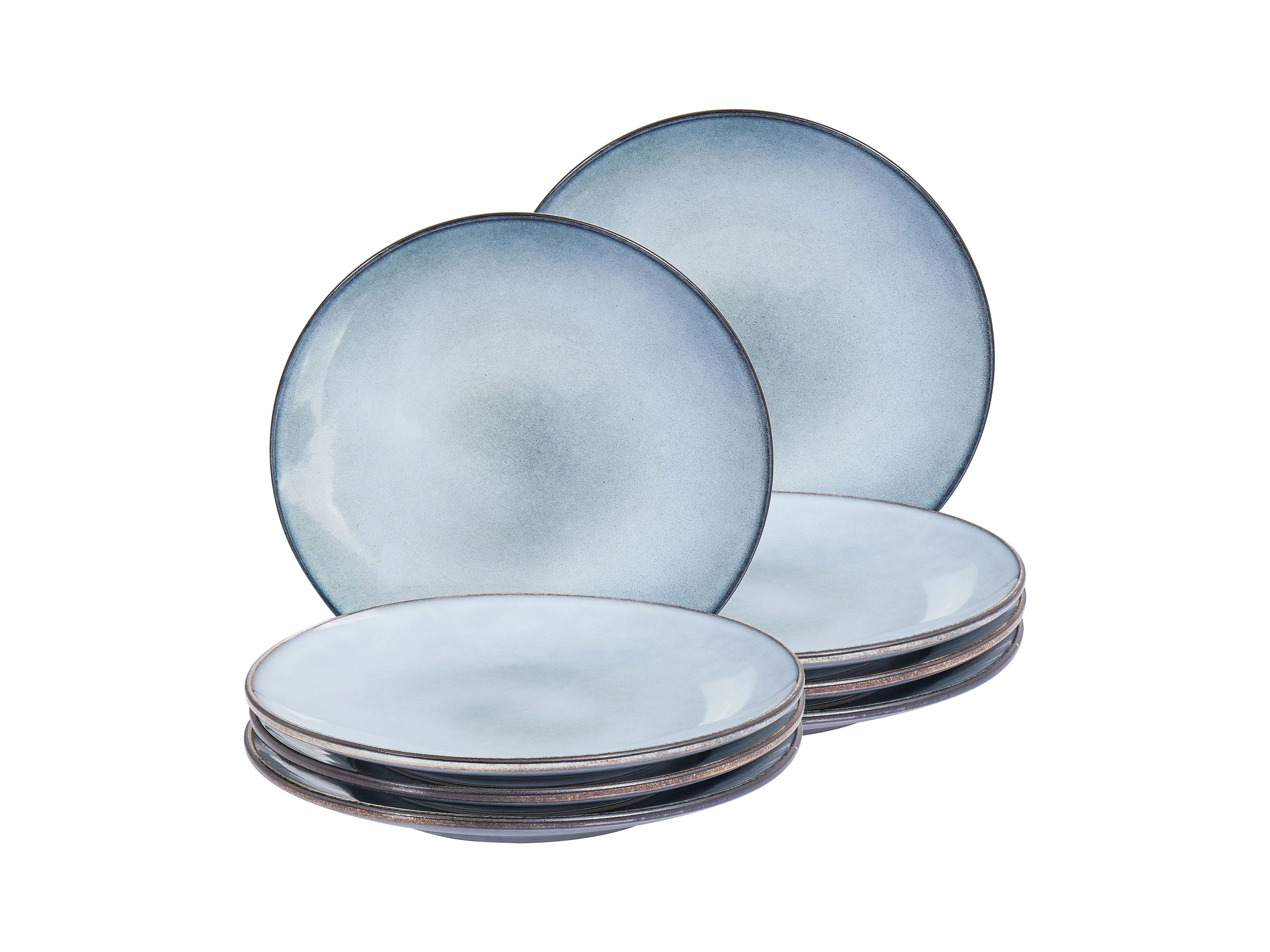 Lot de 8 assiettes plates JUNIPER Grès Bleu clair