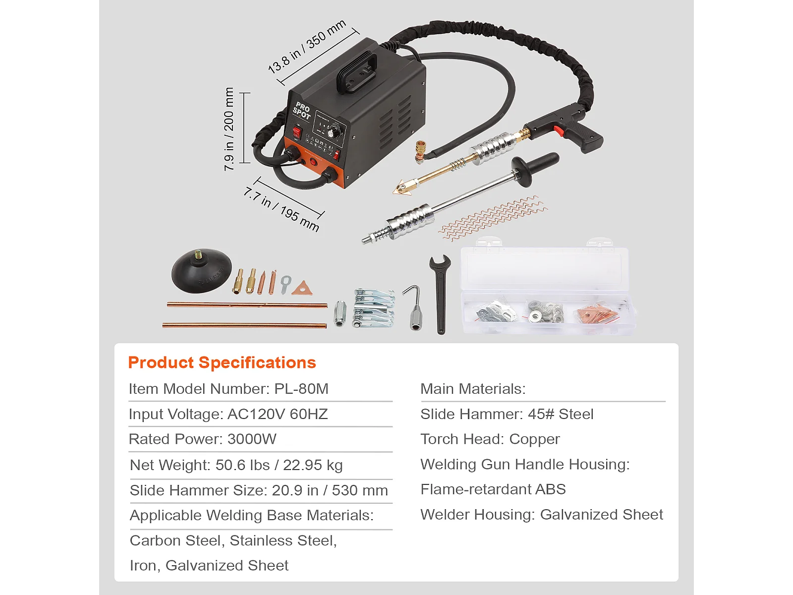 Kit de Réparation de Bosses pour Soudeuse à Goujon SucceBuy 3 KW, Soudeuse par Points, Extracteur de Bosses, 6 Modes de Soudage