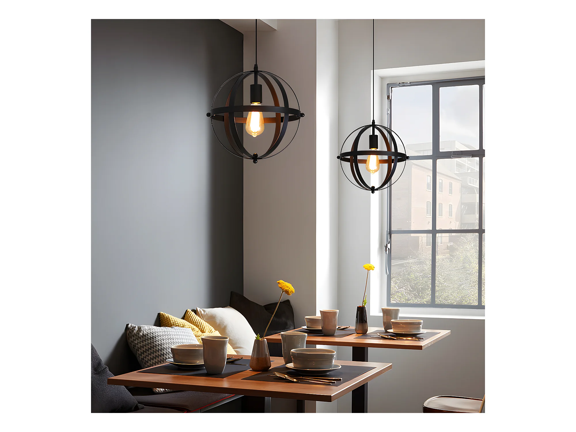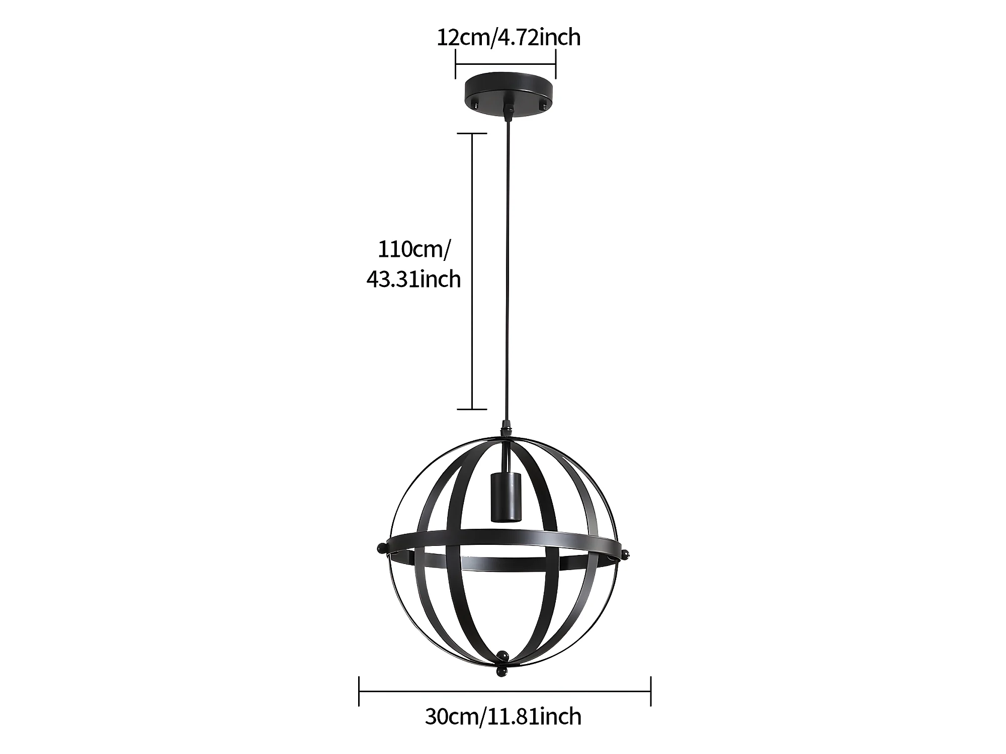 Lustre suspension industrielle vintage E27, 30*30cm, en métal, noir, sans ampoules