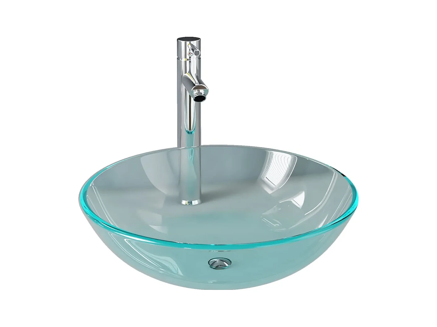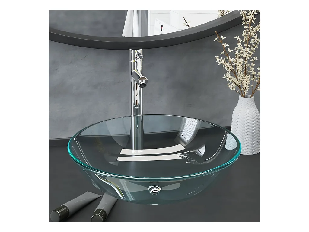 Lavabo de bain avec robinet et drain à poussoir Verre trempé