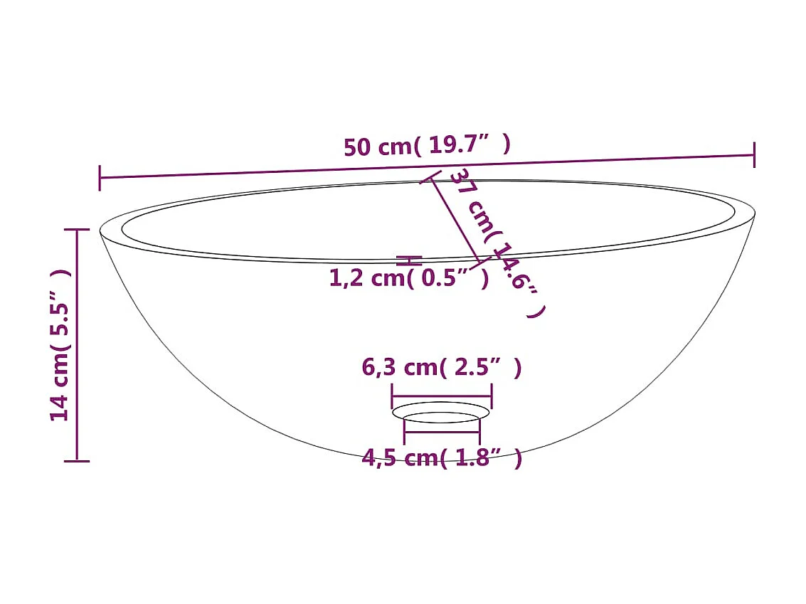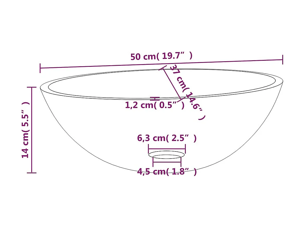 Lavabo Verre trempé 54,5x35x15,5 cm Transparent