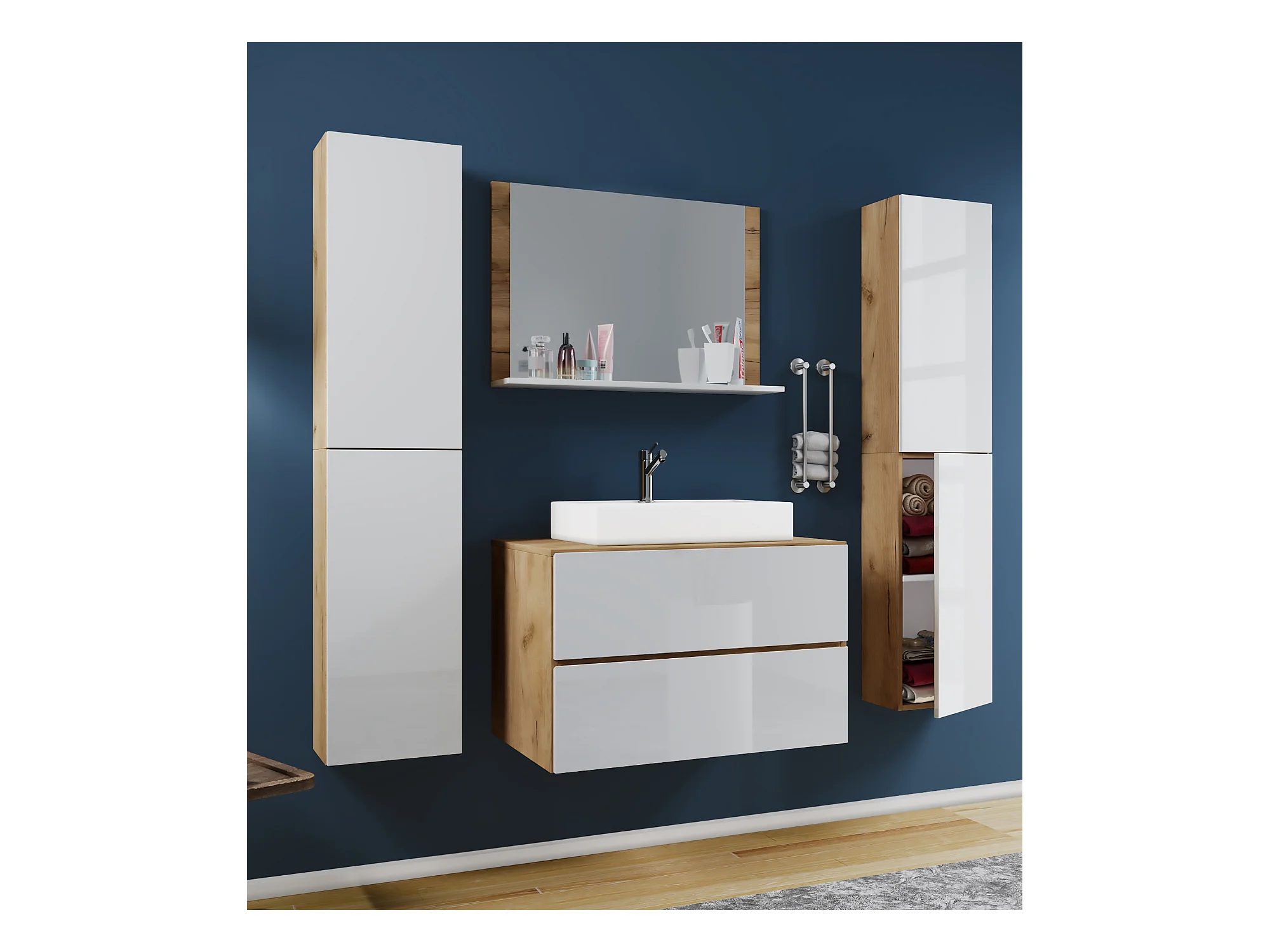 Bathroom furniture washbasin Lendas Honey oak / White H. 150 x W. 80 x D. 51 cm