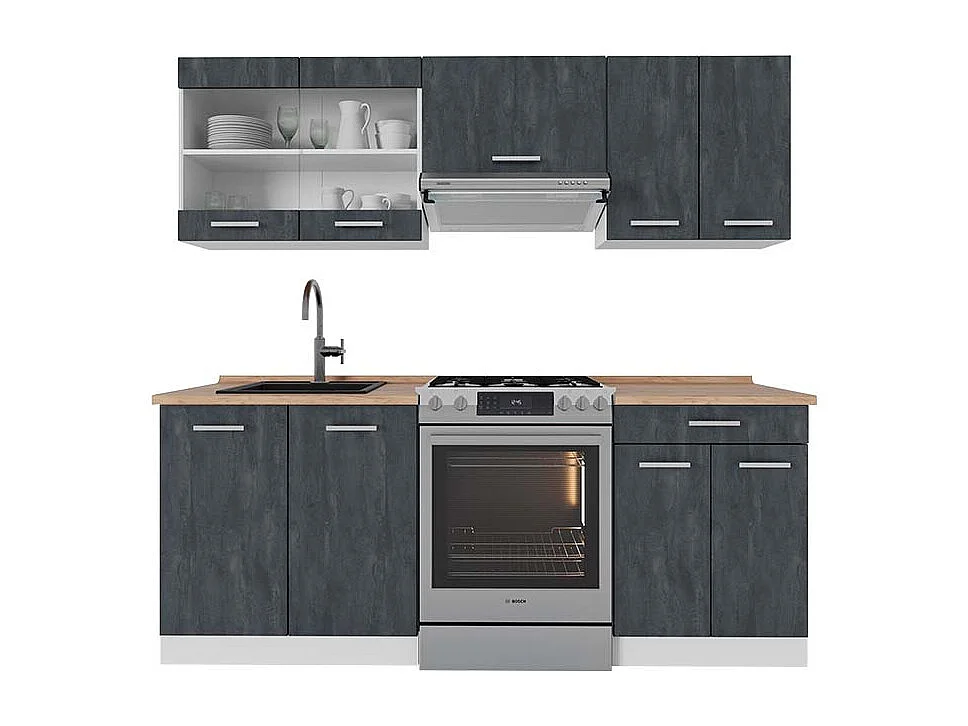 Ligne de cuisine noir béton/anthracite 200x60x81.6 r-line