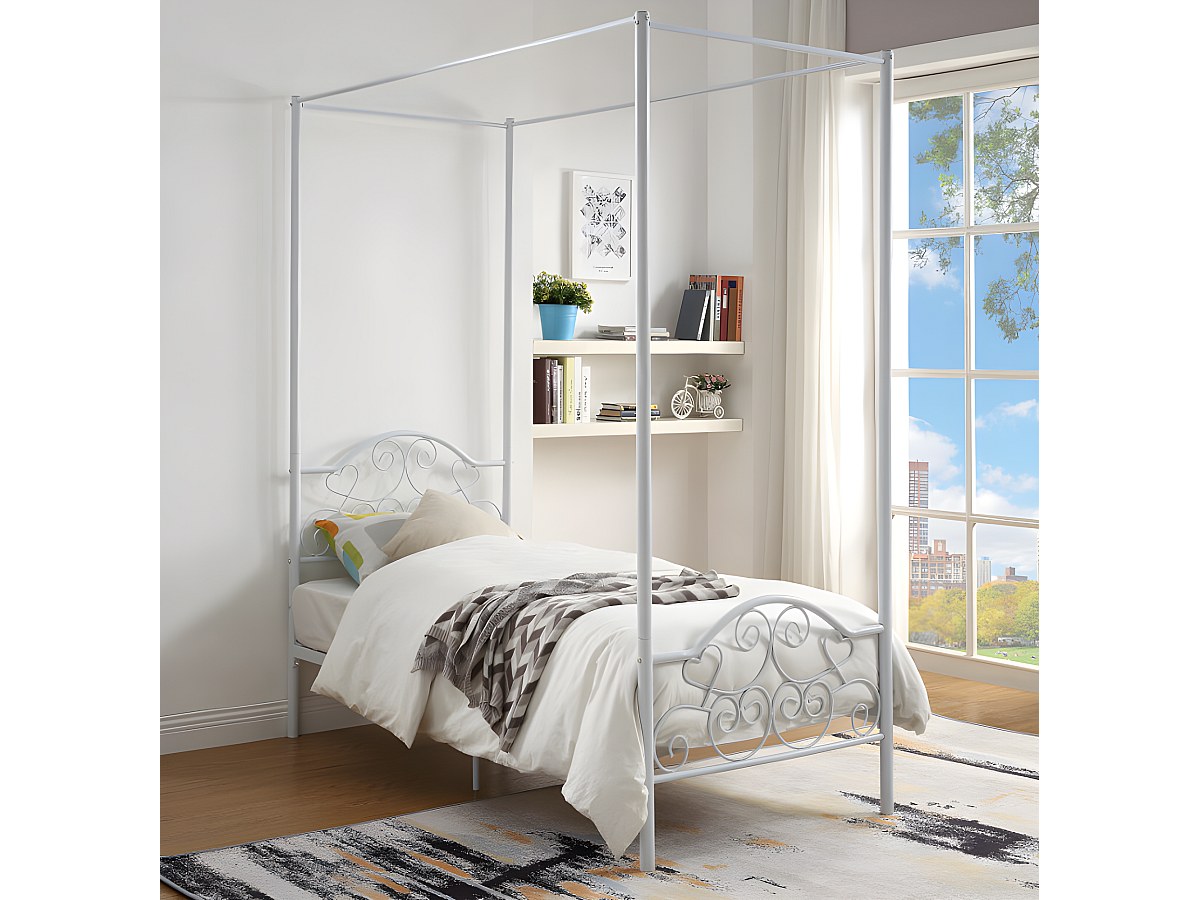 Lit à baldaquin LEYNA - 90 x 190 cm - Métal - Blanc