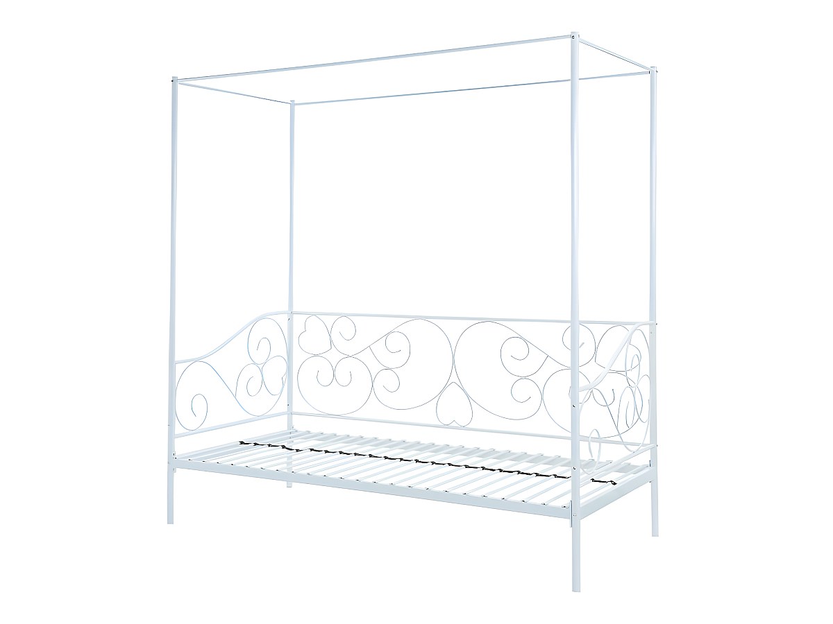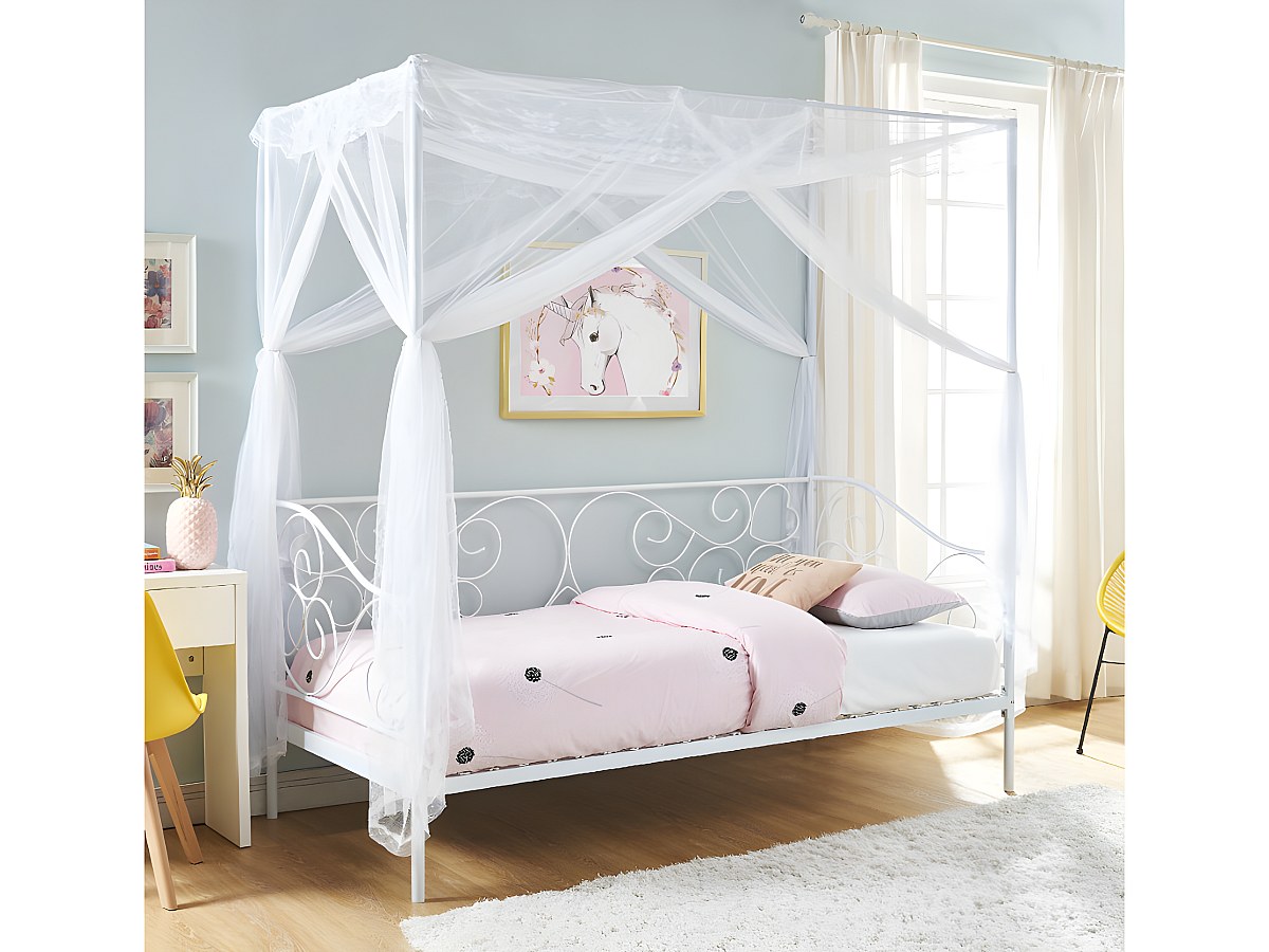 Lit à baldaquin VIVIAN - 90 x 200 cm - Métal - Blanc + matelas