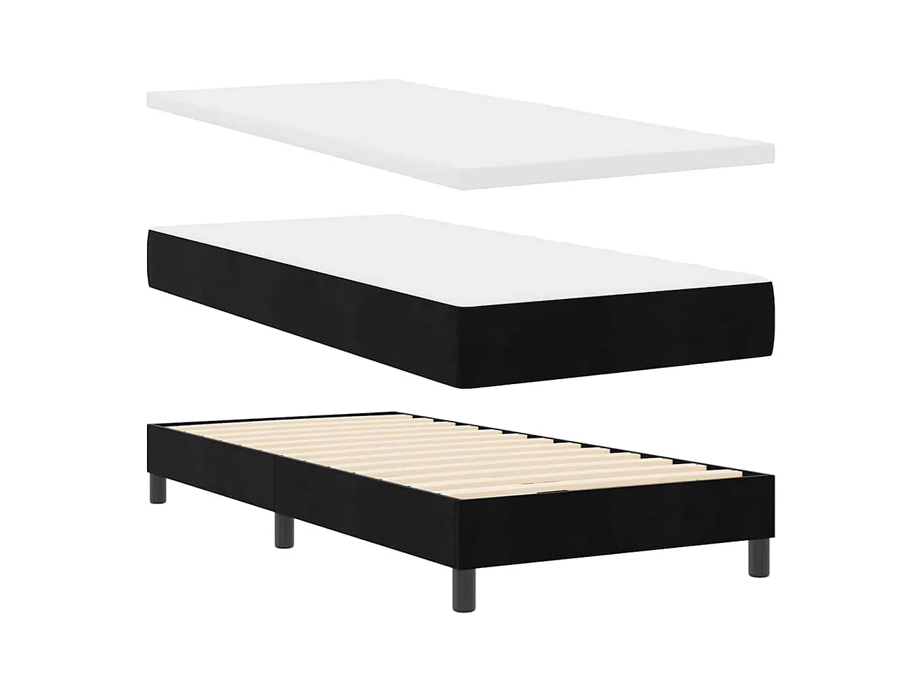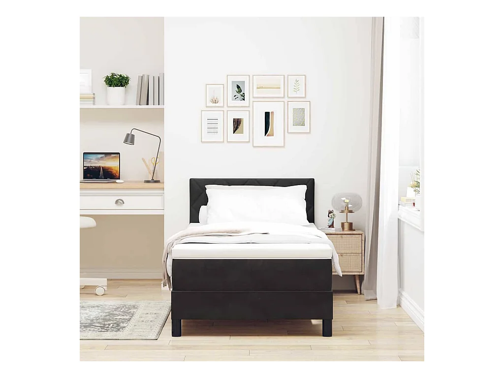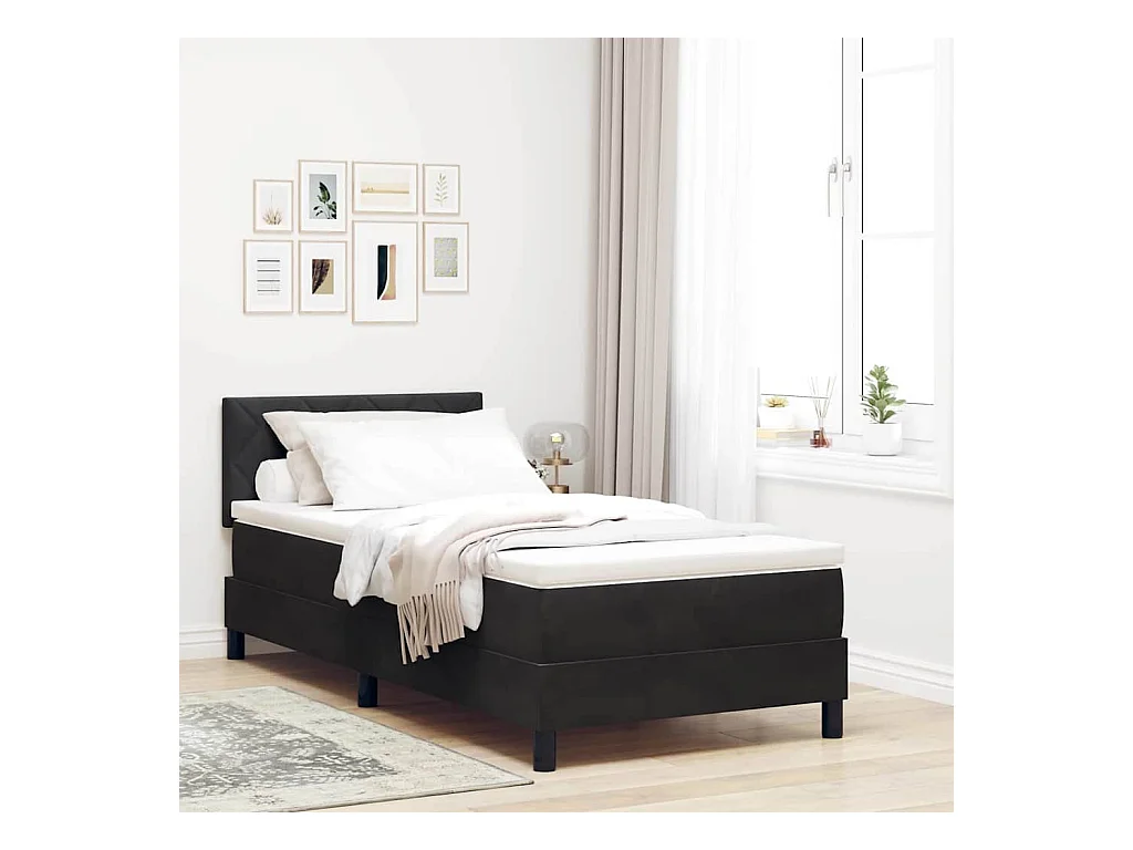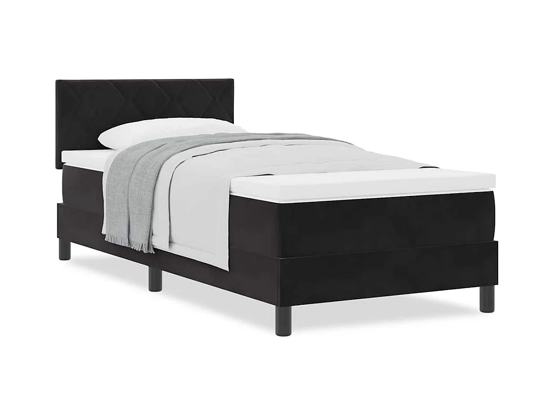 Lit à ressorts avec matelas avec matelas Noir 90 x 190 cm tissu