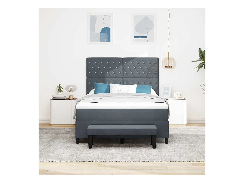 Lit à ressorts avec matelas Gris foncé 140 x 200 cm Velours