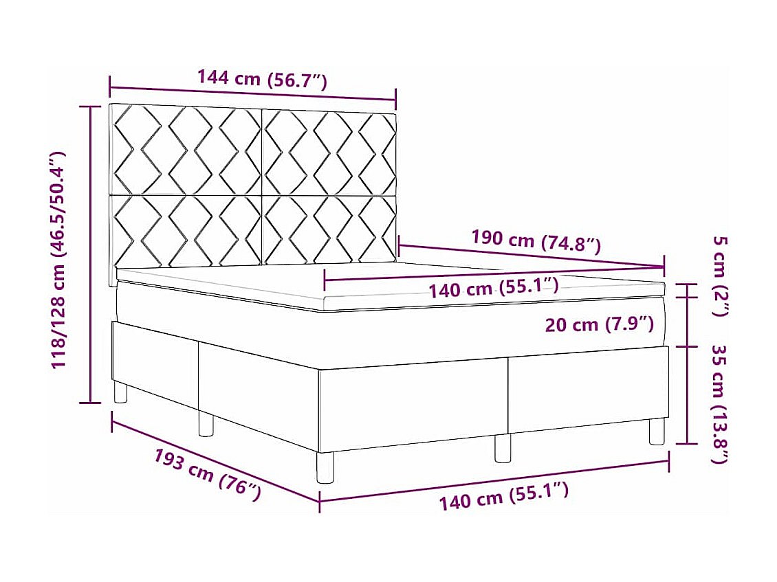 Lit à ressorts avec matelas Taupe 140 x 190 cm tissu