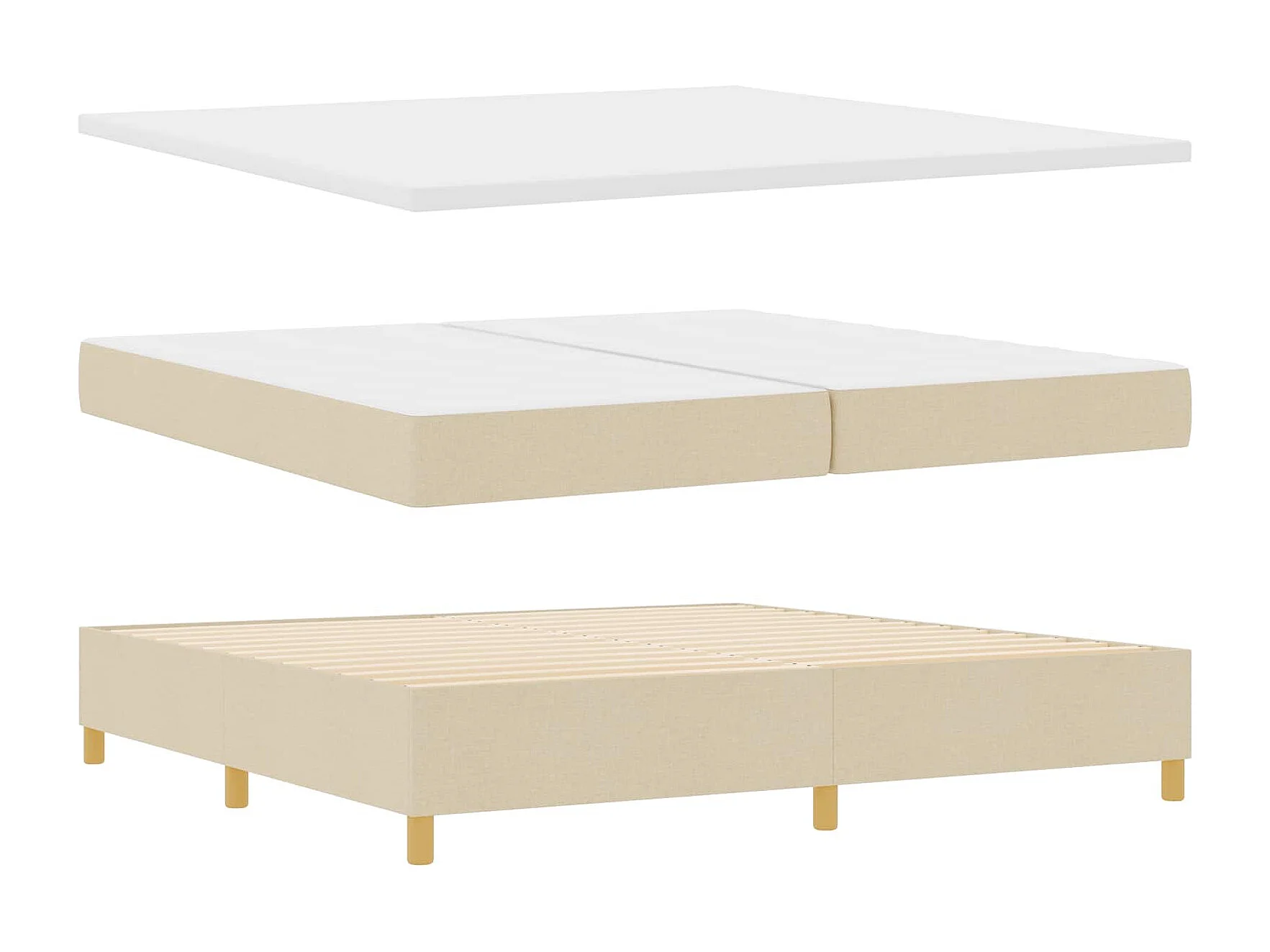 Sommier à lattes de lit avec matelas Crème 200x200 cm Tissu