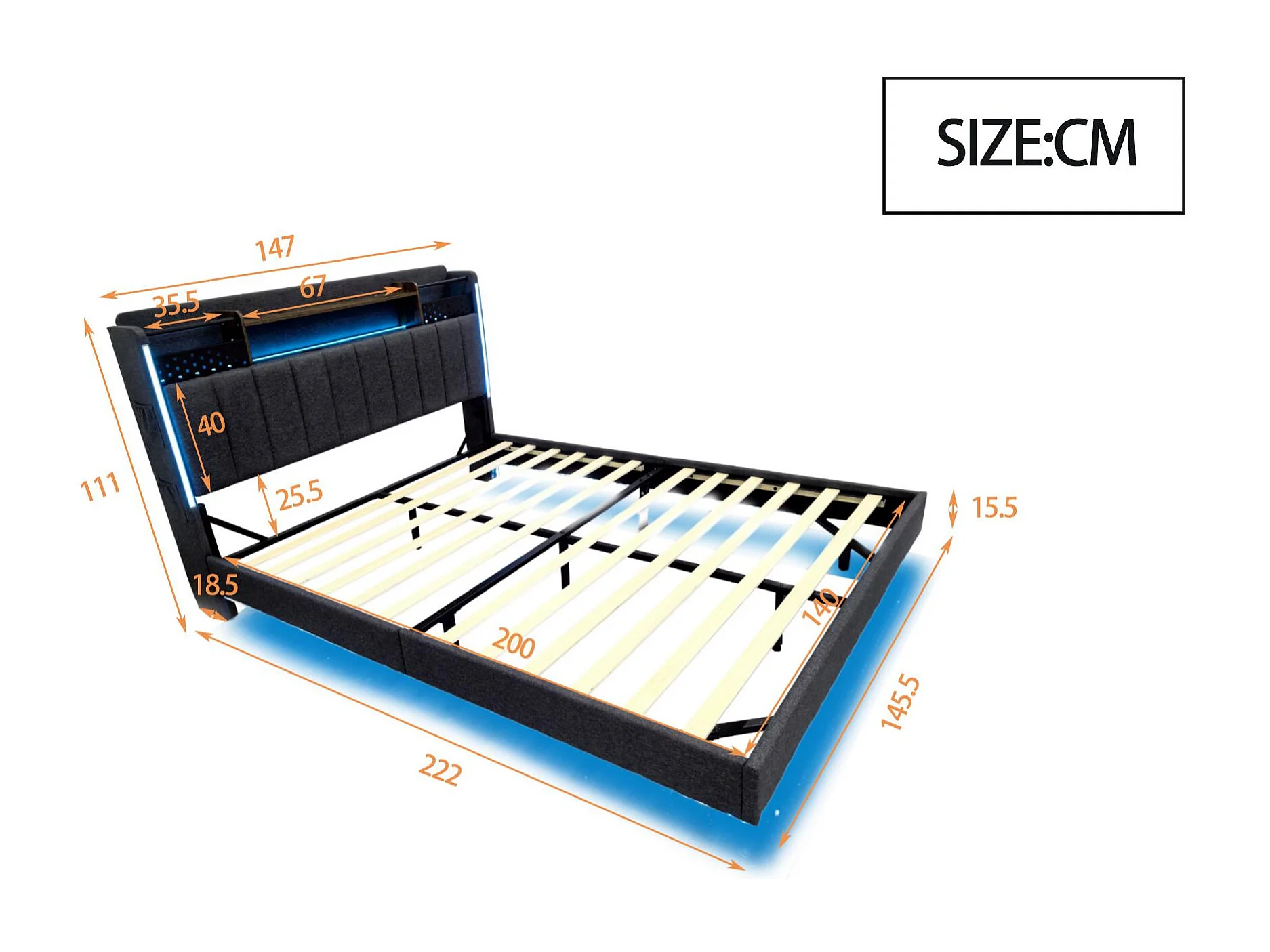 Lit led 140 x 190 cm